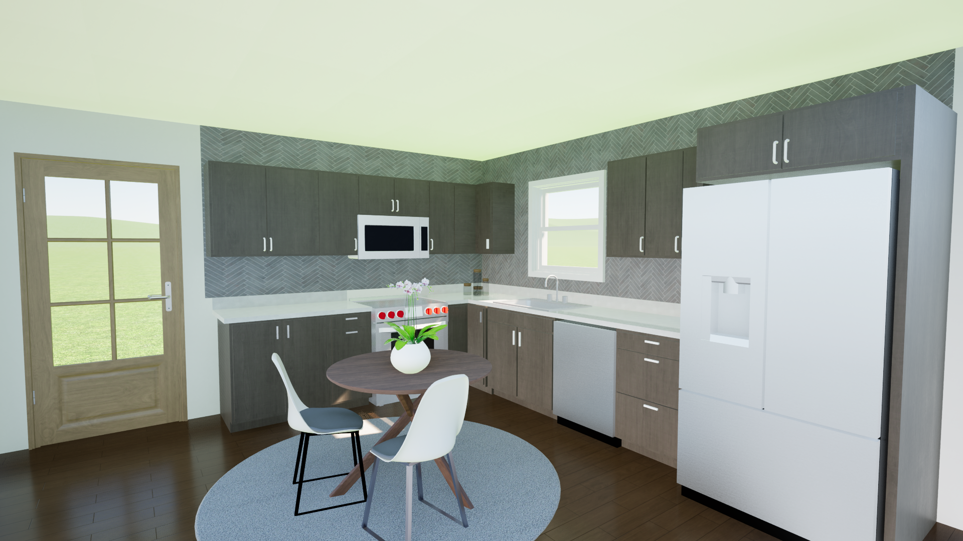 create realistic render of kitchen in a transitional style