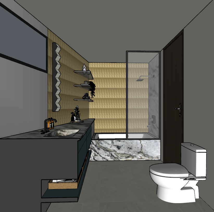 the yellow tile is metallic gold subway straight lay standing the material above sink is mirror the long piece next to it is a light the subway is straight lay and vertical donot change anything else