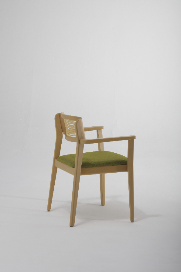 new urbanism interior shot dining room set for 3 people with natural materials such as raw linen a wooden table and a spacious minimalist space illuminated by a large window which lets in natural light architecture