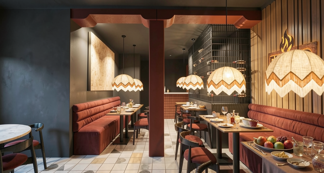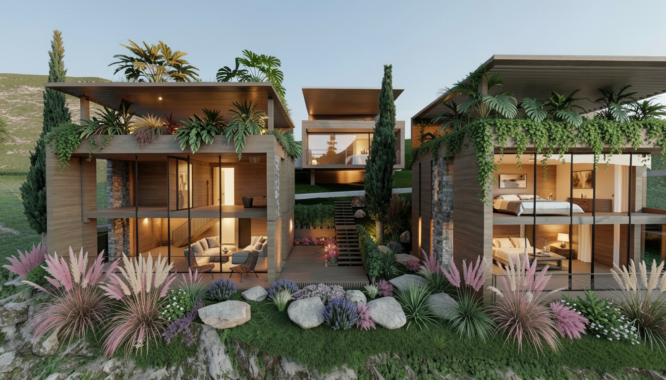 add subtle indoor plants inspired by traditional chinese garden composition introduce minimal sculptural greenery such as elegant bamboo clusters in refined planters small bonsai style trees tropical plants suitable for hainan climate plants should be placed symmetrically near the background wall and seating areas maintaining spatial balance and calmness keep the design minimal and refined avoiding decorative excess use high end contemporary planters in bronze or neutral stone finish maintain luxury superyacht atmosphere do not modify architecture materials lighting or furniture
