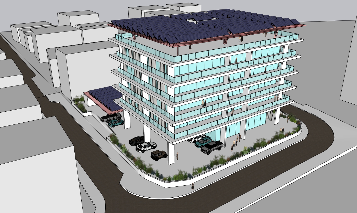 exterior shot early night sky city lights city buildings office building lights inside building lights on rooftop street lamps cars on road bright lights