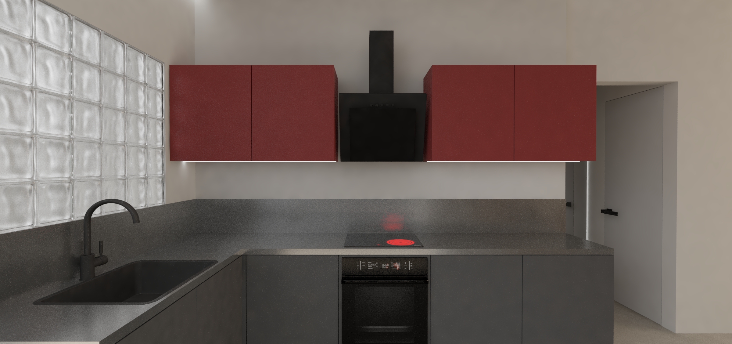 no sunlight make the glassblocks less transparent the kitchen darker