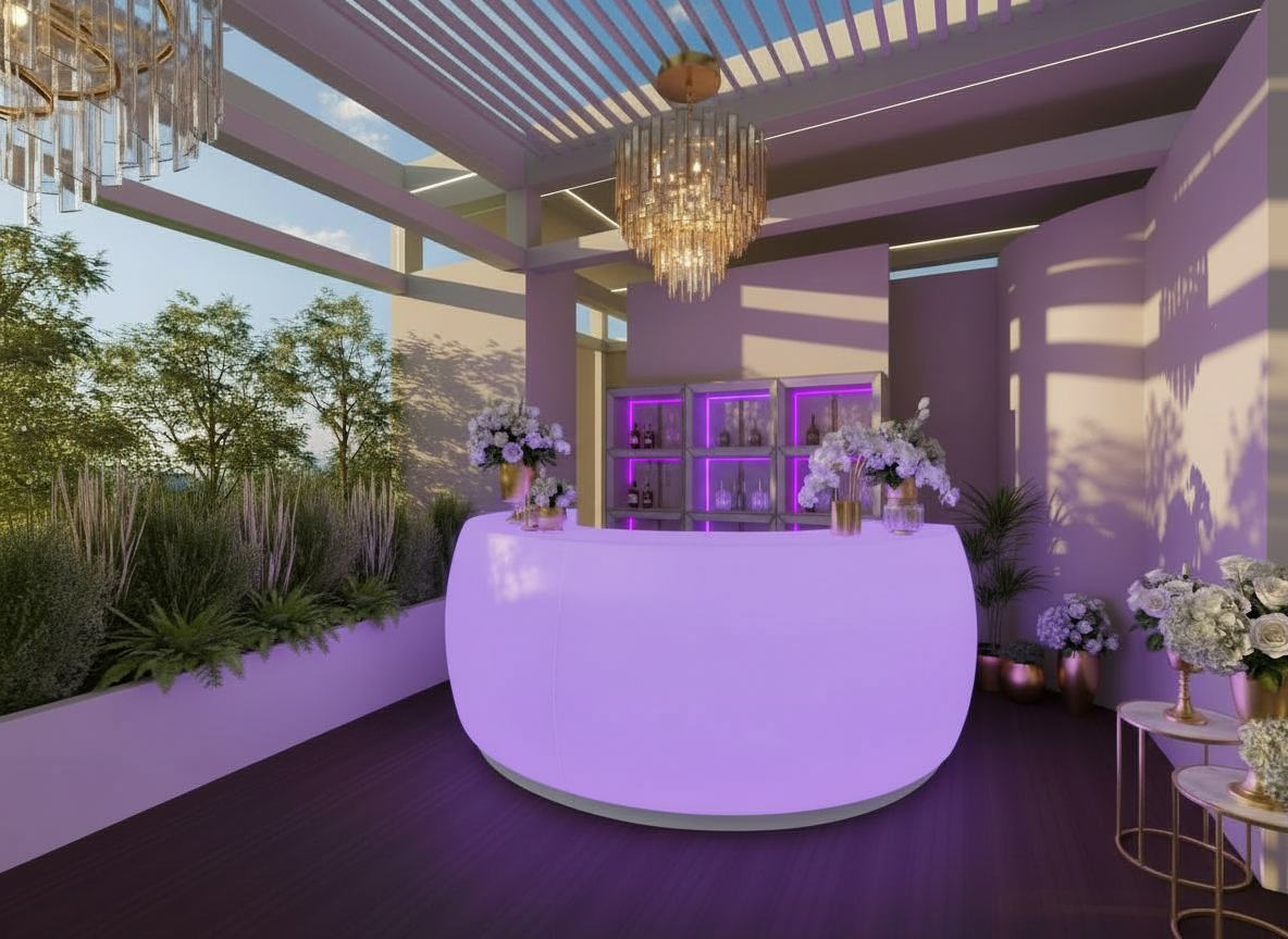 the shelves behind the bar are white opal bar with rgb colors incorporated