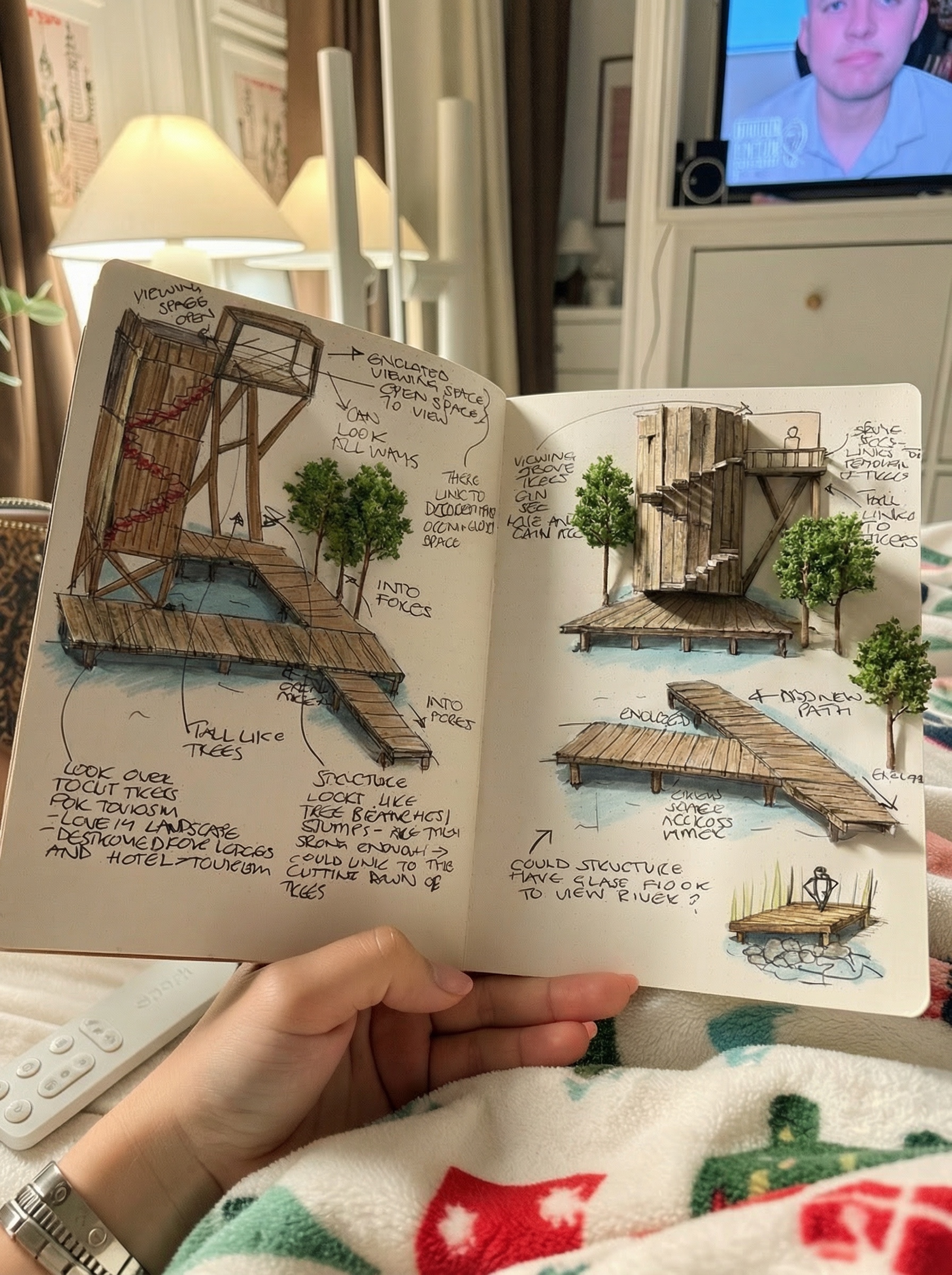 make my drawing into a building that would be placed within a forest materials can be seen in drawings timber glass etc its 2 different ideas