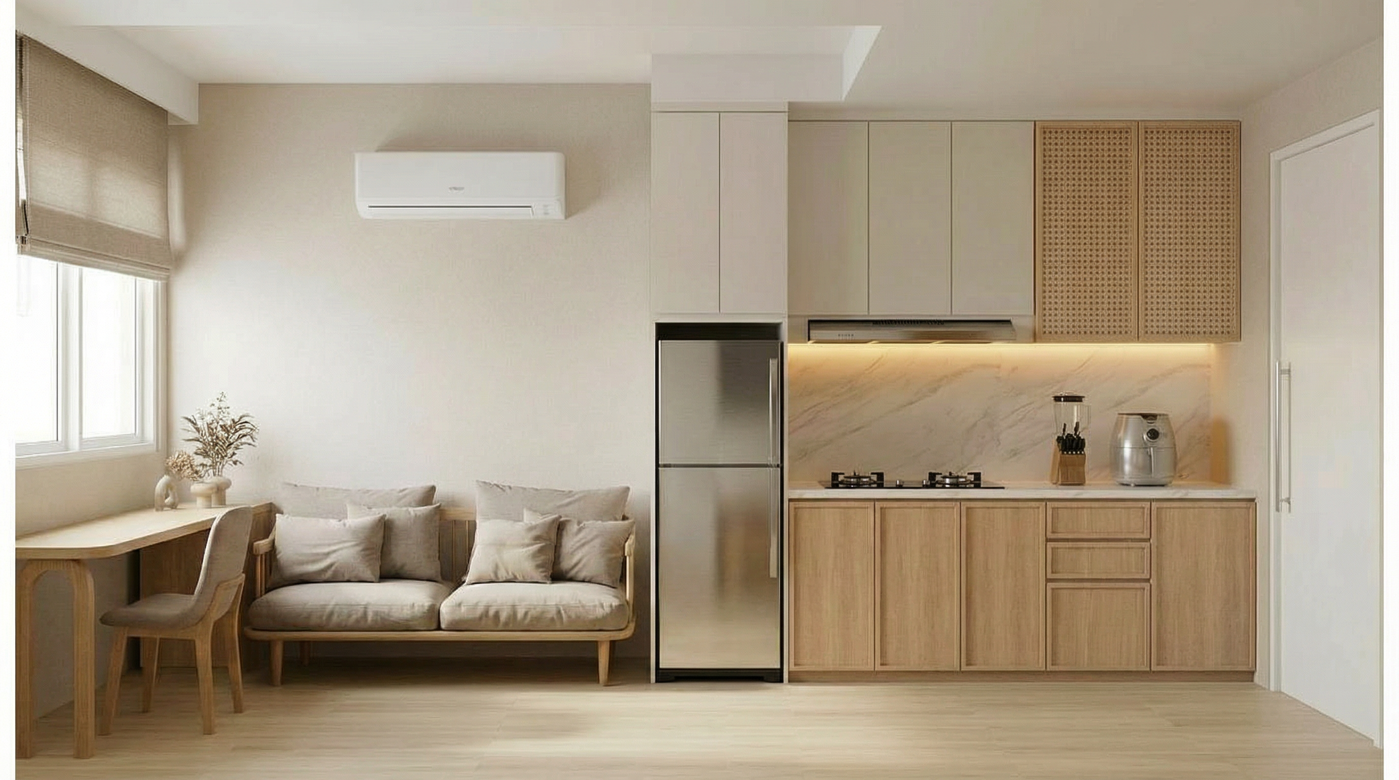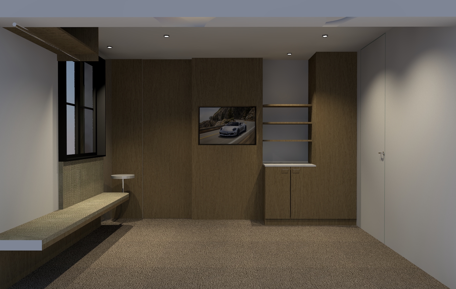 keep all existing textures and finishes provide cushioned seating to bench seat under window in same texture