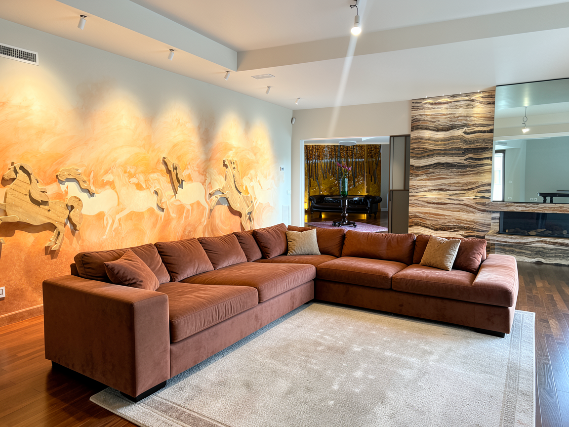 architectural interior render of a childcare center based strictly on the provided sketchup image do not add remove or modify any architectural elements furniture openings or layout keep all objects proportions and positions exactly as modeled all existing ceiling light fixtures must be turned on and emit soft realistic illumination combine artificial lighting with natural light if present keeping a balanced and believable exposure preserve the original colors and materials but enhance them with realistic textures accurate material properties and subtle imperfections fabric softness matte finishes child friendly clean calm and warm atmosphere suitable for a child care center environment realistic global illumination soft shadows correct scale neutral camera perspective no dramatic effects no stylization semi realistic architectural visualization professional quality natural color grading no new furniture no extra decor no change in layout no change in wall positions no change in ceiling design no exaggerated lighting no cinematic effects moderate cartoon look all original blue walls and ceiling from the source image must remain blue