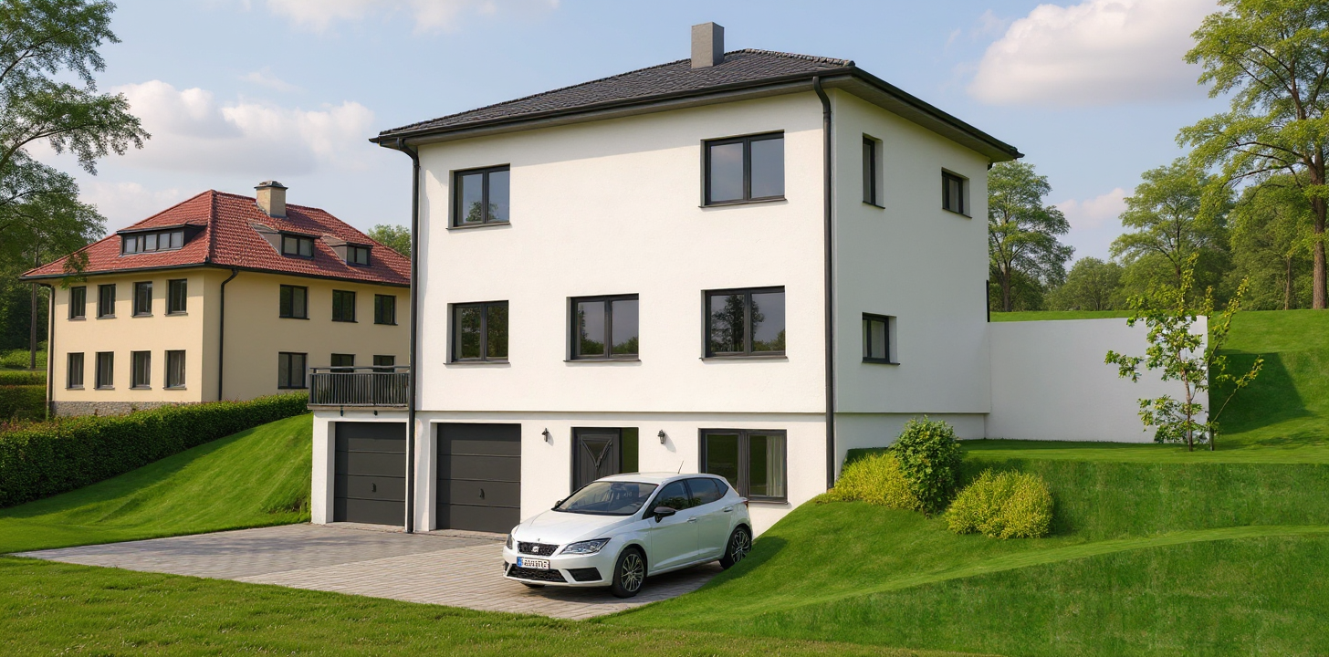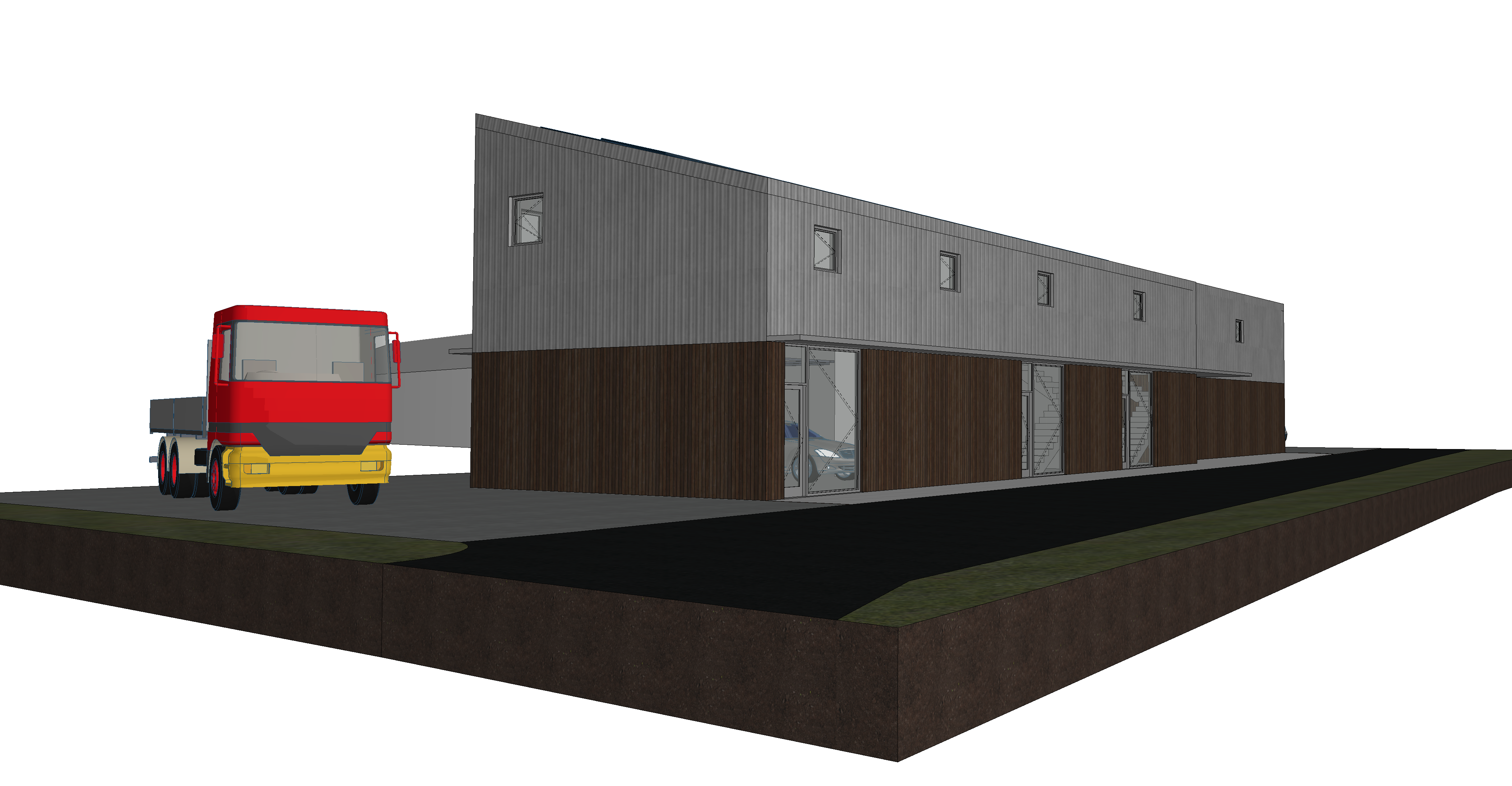 a modern building in a brownfield the brownfield is turned into a modern industrial park with lots of greenery