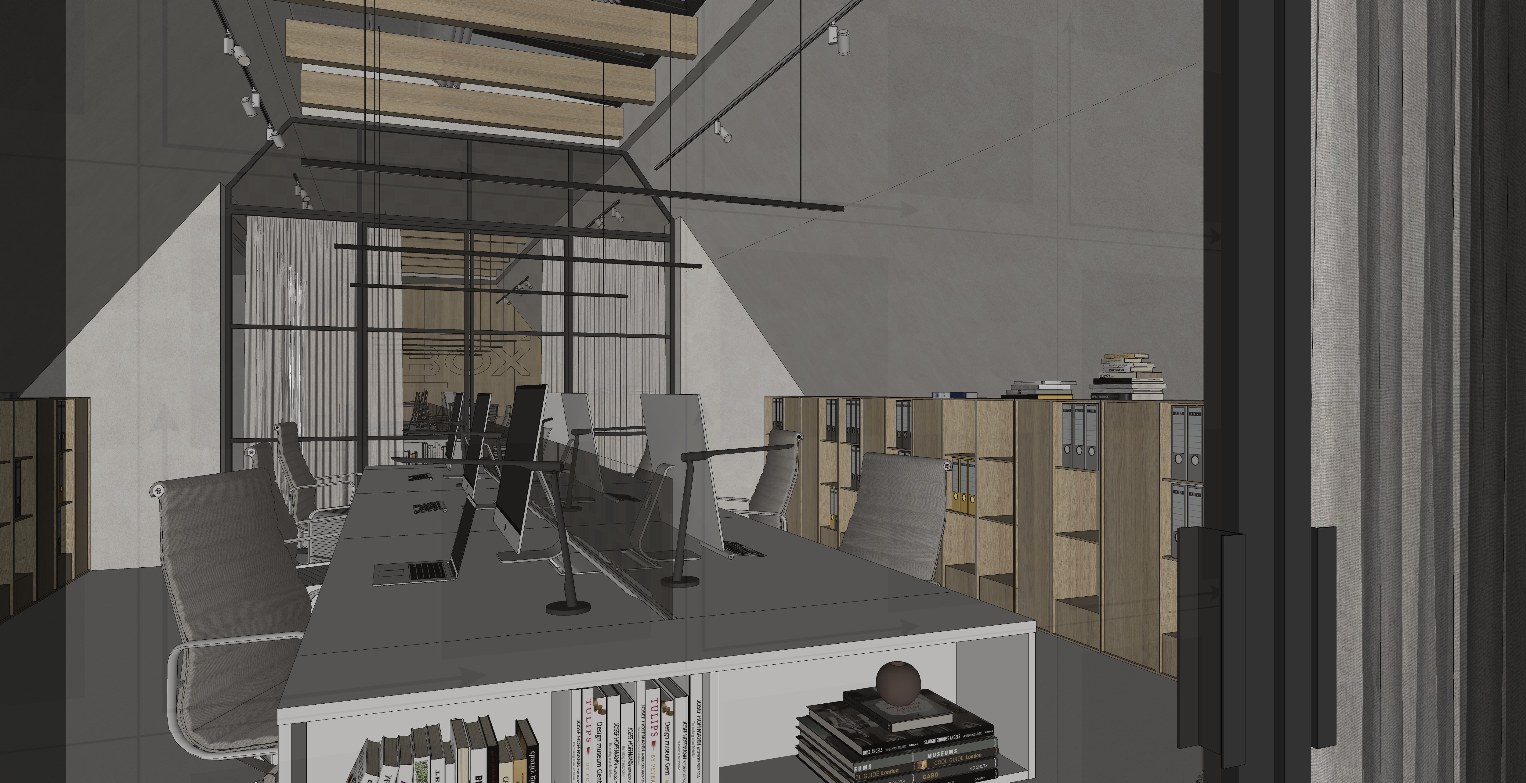 photorealistic interior soft light through the windows floor light polished concrete