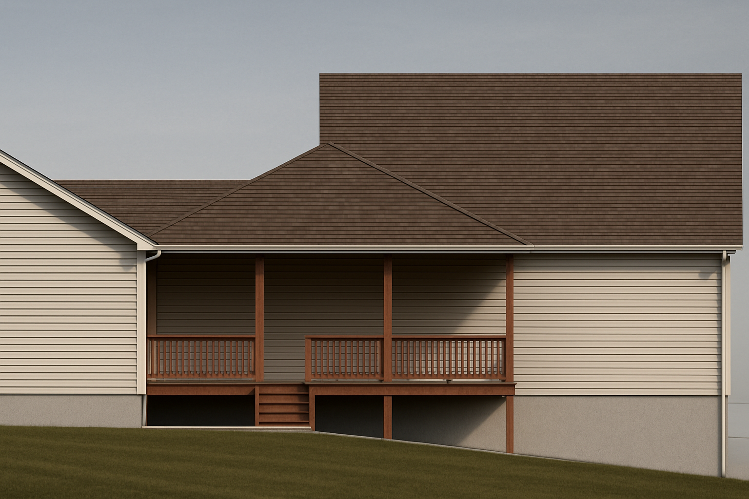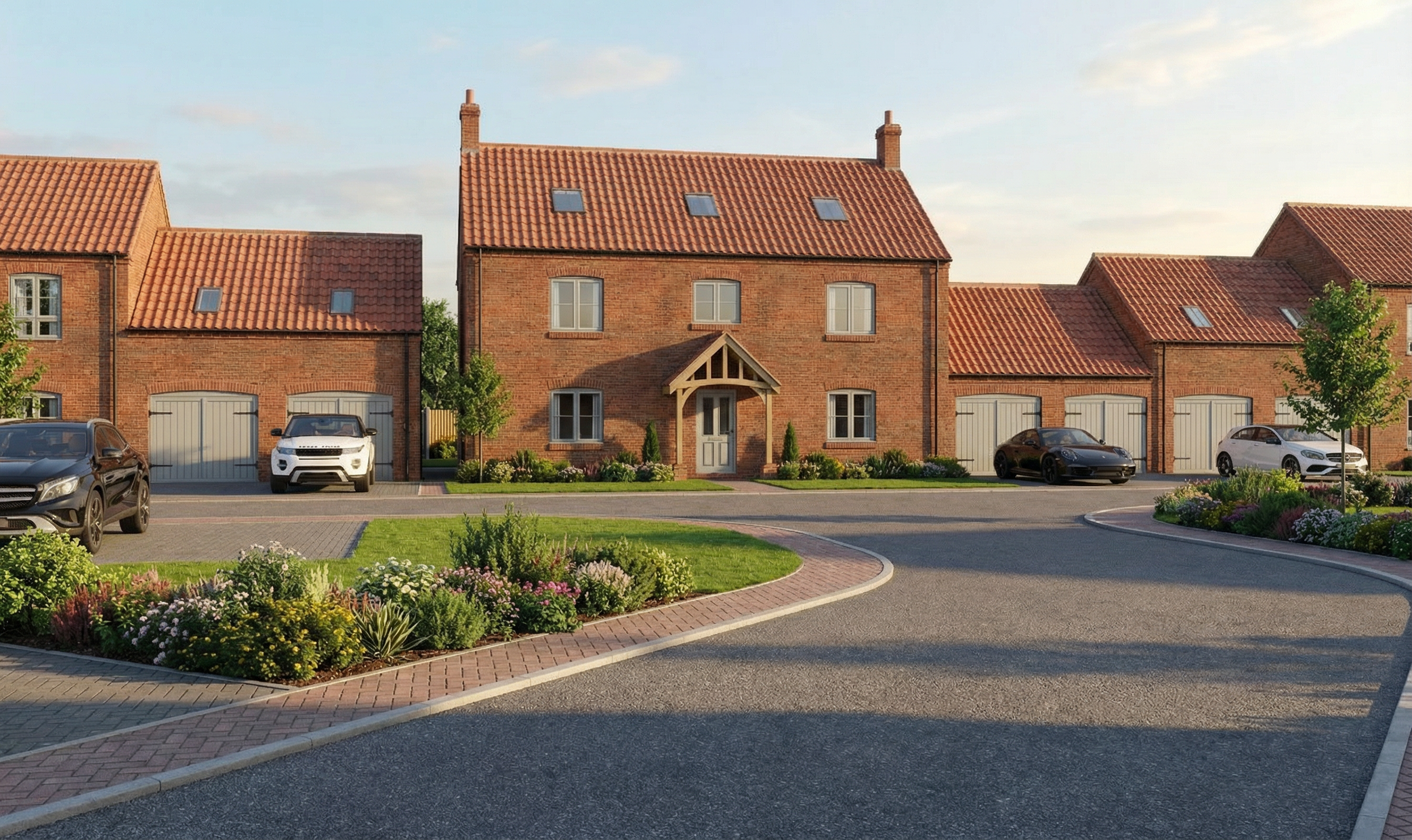 coastal replace background sky with a sunny blue sky with puffy clouds add lawn and landscaping on both sides of the yard change driveway to pavers