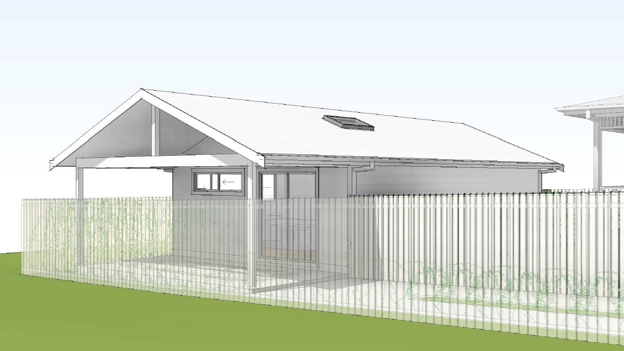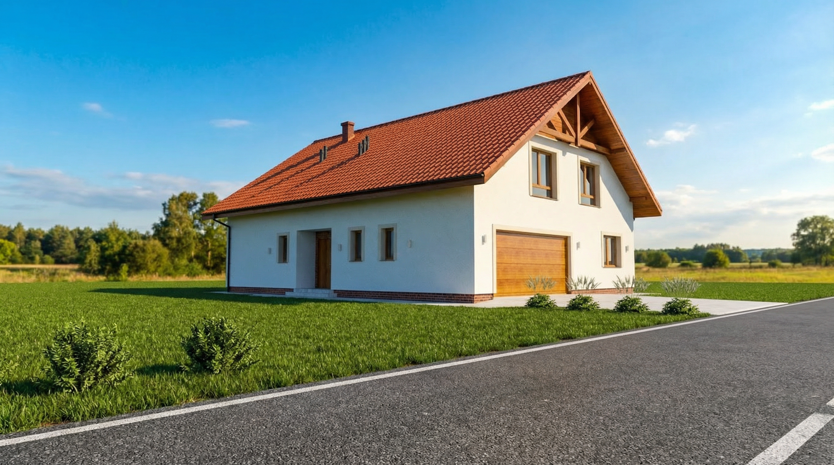 render a photorealistic 3d perspective of this house in sydney australia reference the current material style just enhance them white customorb metal roof horizontal linea white cladding to walls keep model geometry the same windows doors roof walls driveway make a lush vegetation that looks native to australia do not change the view only enhance the current materials and make the landscape nicer vegetation detailed textures in glass reflections and a vibrant clear sky with light atmospheric depth render in hyper realistic architectural visualization quality 8k resolution