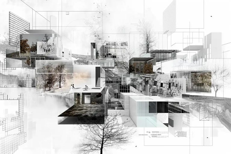 exterior shot create a creative abstract collage from this