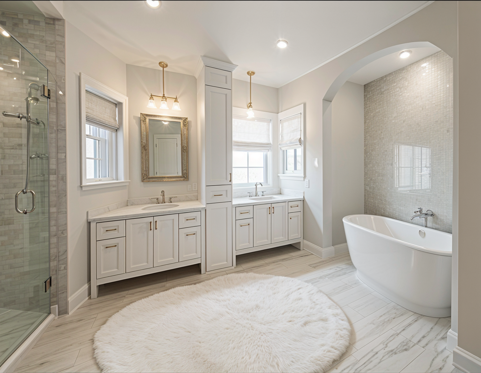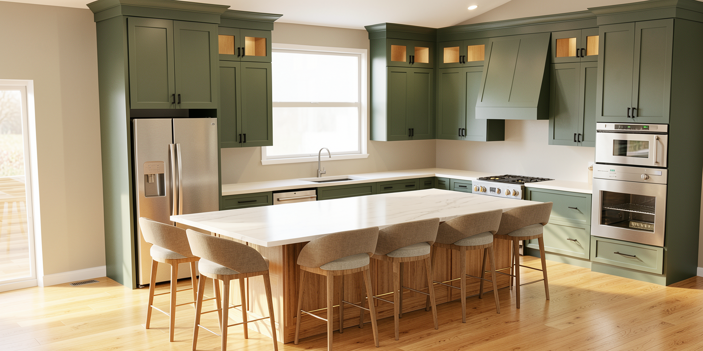 flat ceiling inside shot interior walls white cabinets natural wood color