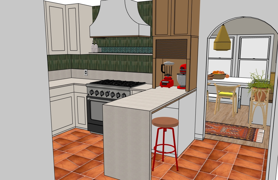 kitchen render materials true to the model terra cotta floor concrete countertops