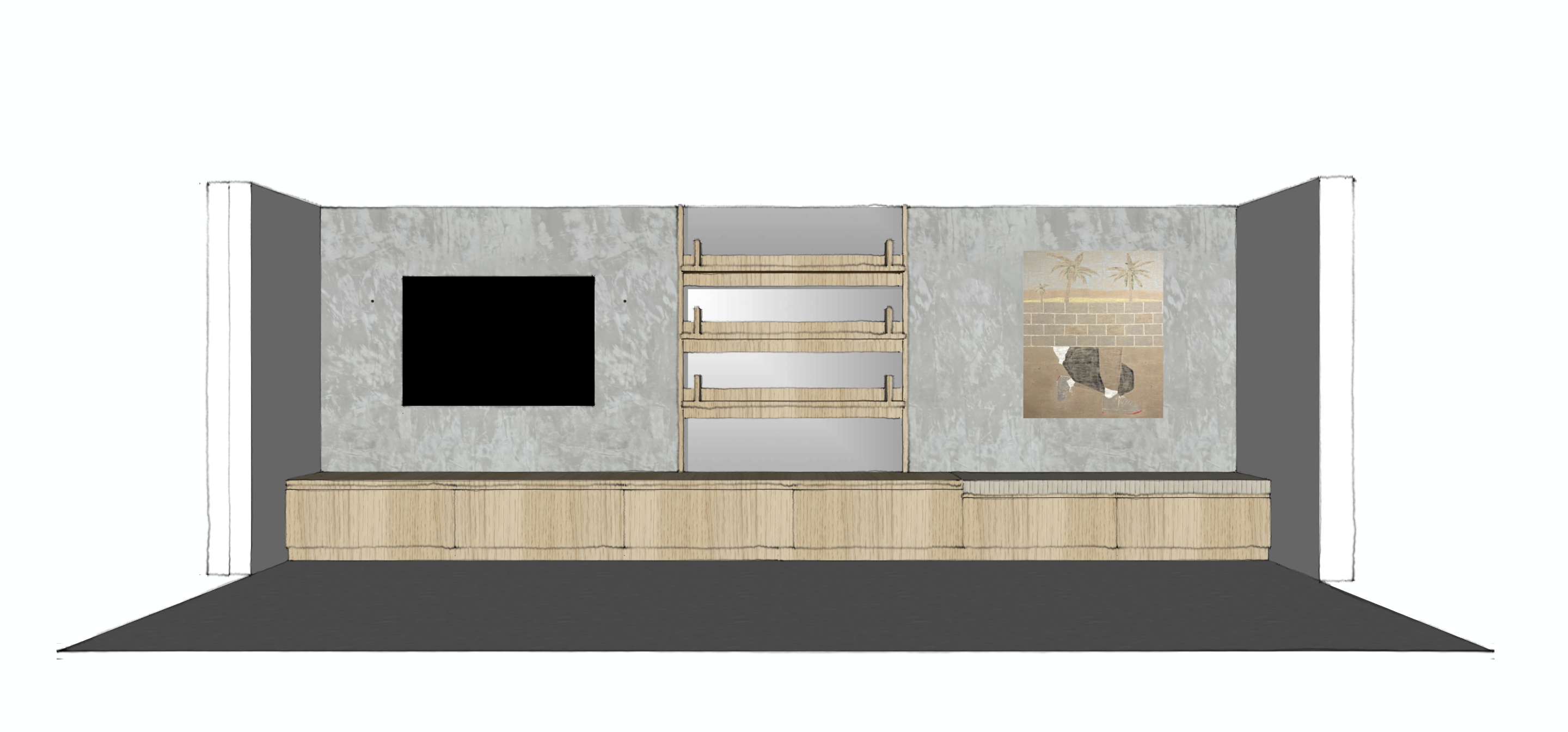 interior shot keep same colours and finished put but into a room this is a joinery unit dont add any furniture