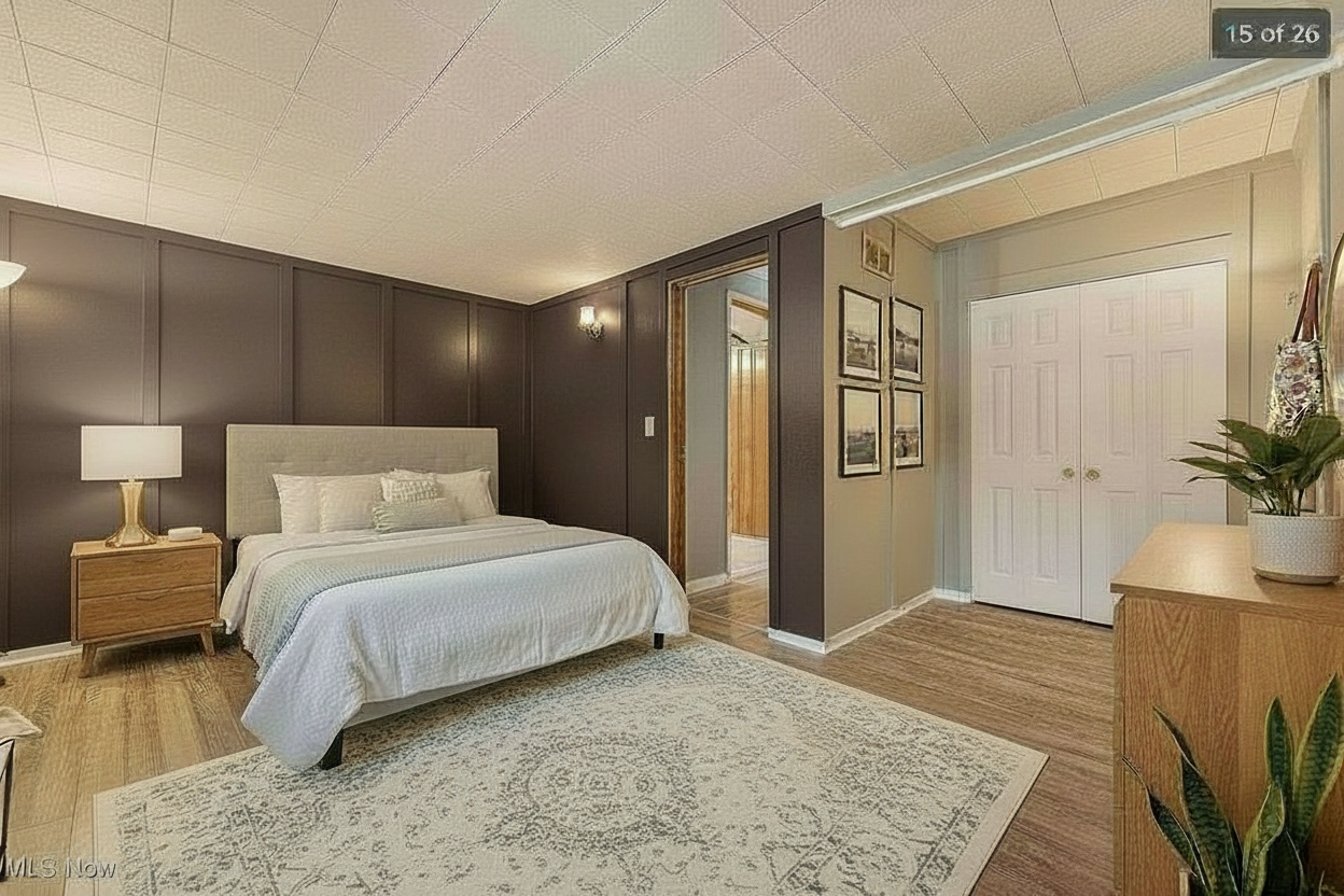 make kitchen look realistic maintain the location of all the walls add lighting and pendant lights over the peninsula add decor and wall art i want the appliances to be white with fold hardware or stainless ceiling is 8 ft wall colorsw to be light such as reference photo add wall cabinets add a small dining table on wall next to fridge with 3 chairs but do not move walls to do this
