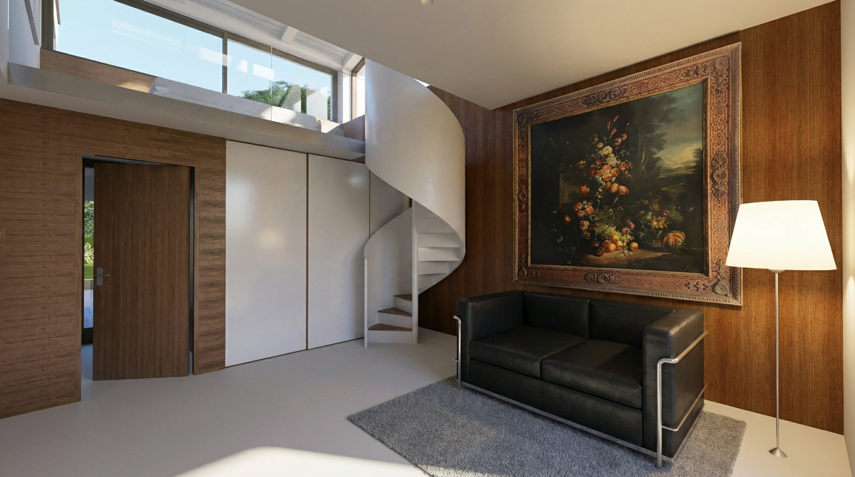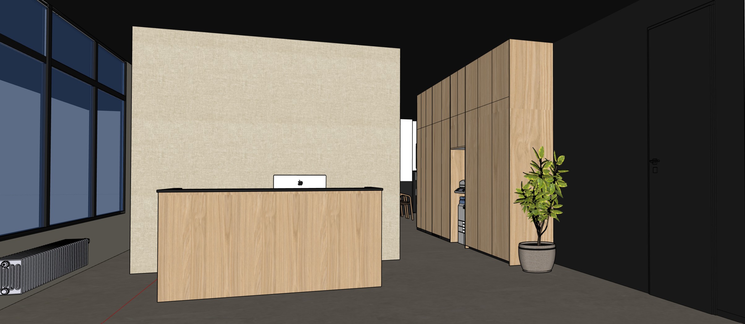 no window in the back but window on the left wall