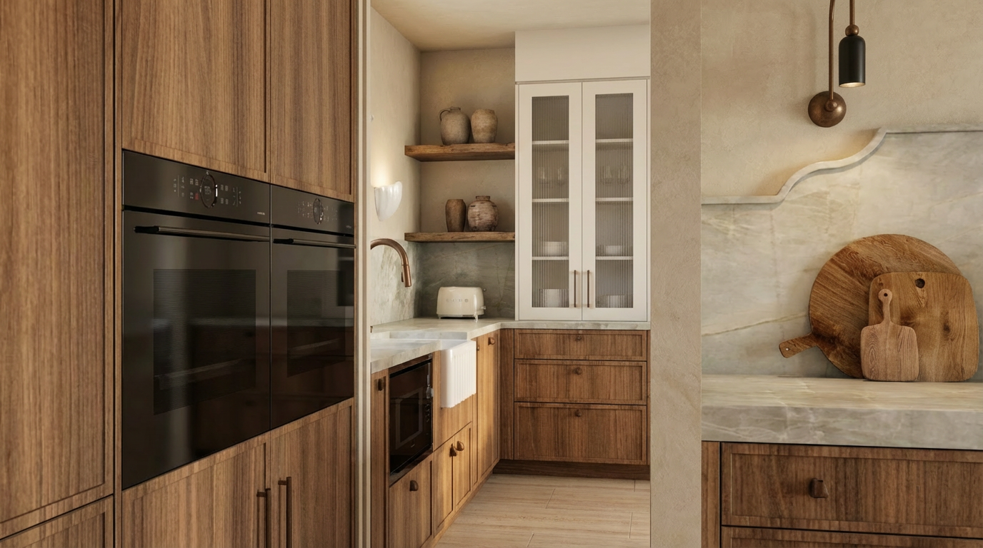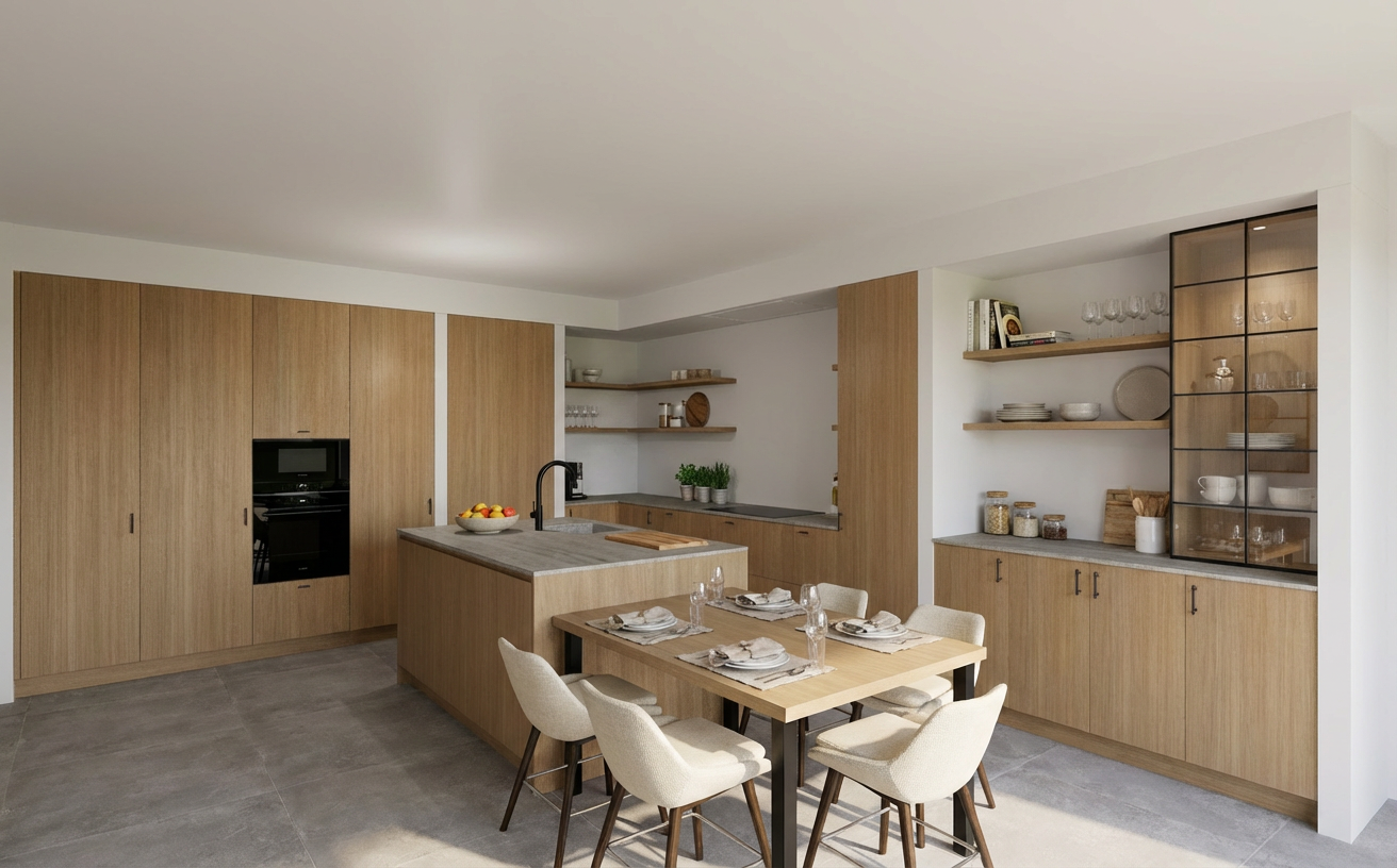 model of a house add few trees to far background for context add few vegetation with very very few floral ones for context should look lived in