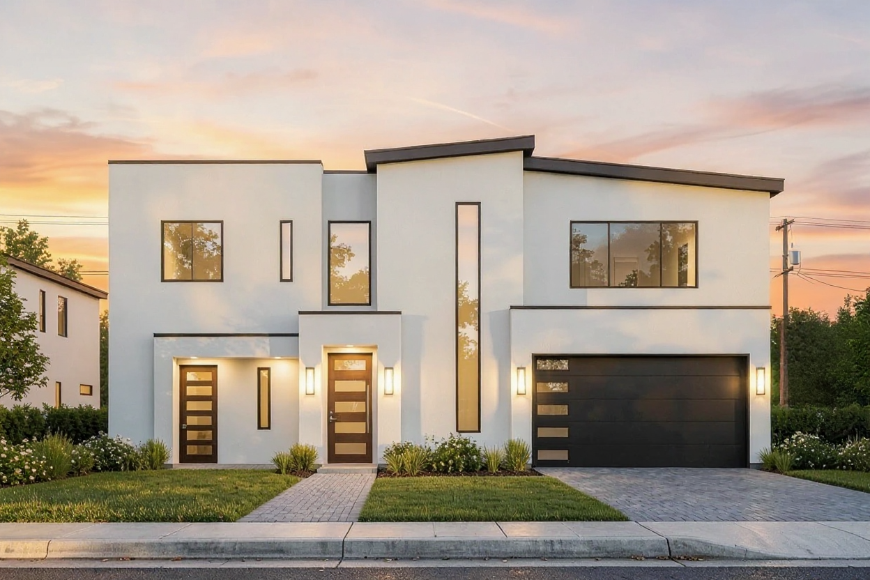 dry stacked cottonwood white stone behr whisper white smooth stucco walls behr carbon trims and eves
