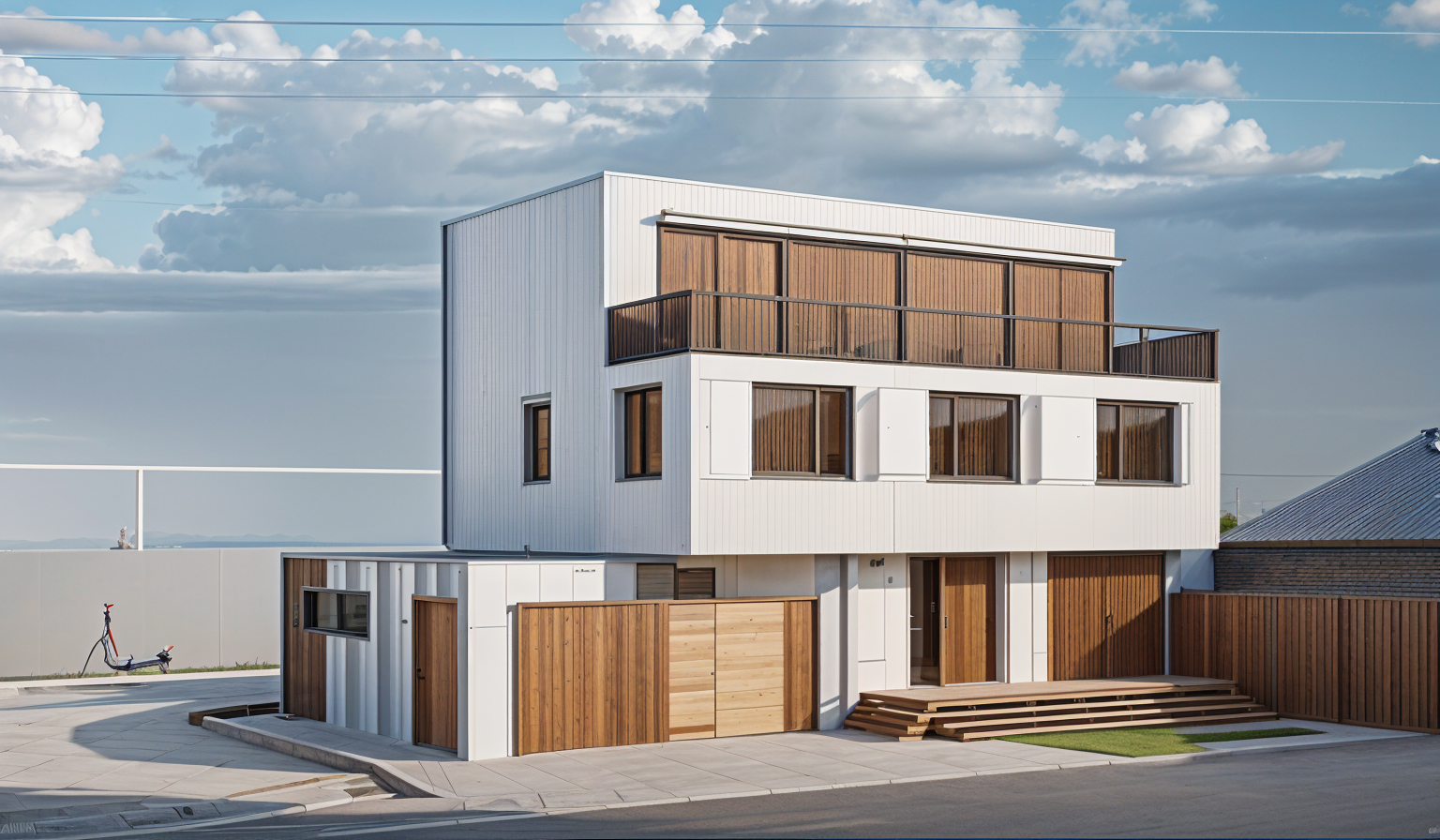 mache die fassade wei begr ne die terrasse erstelle eine st dtische freundliche umgebung