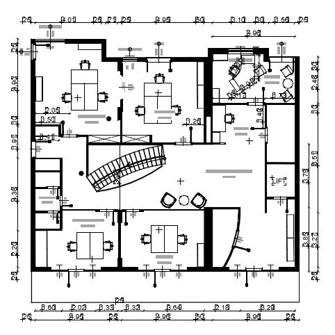 convert this floor plan into a modern isometric 3d view of a office show the space from an elevated angle with furniture walls and details visible use the same furniture as shows on the plan do not change the orientation of the floorplan