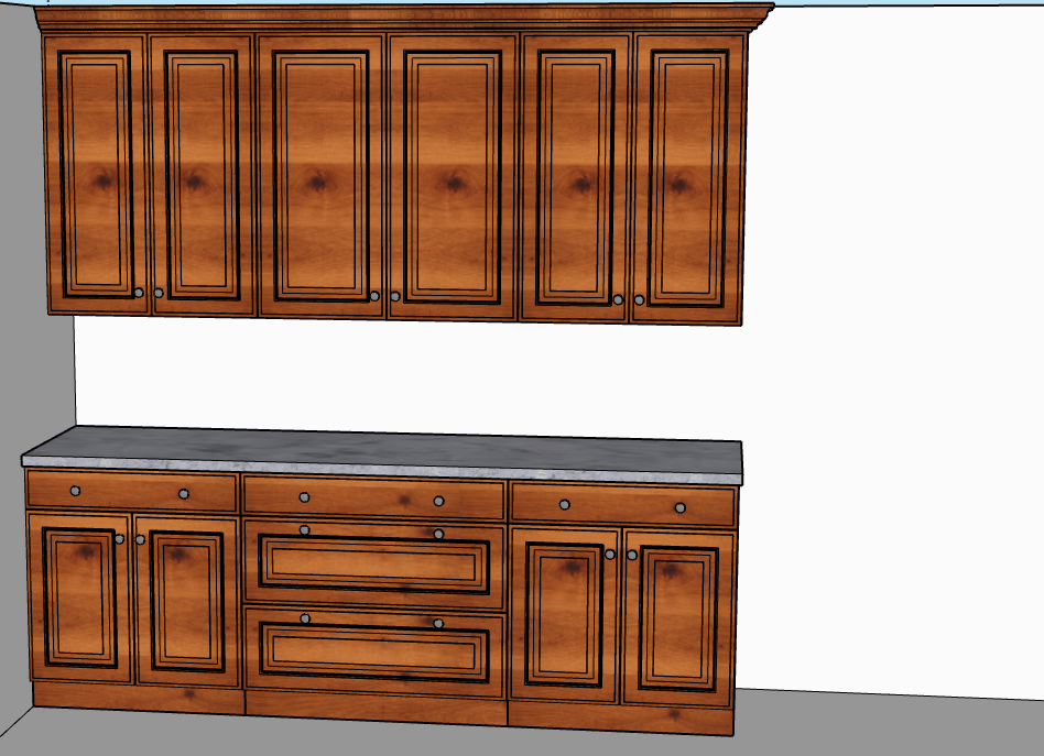 this is a wall in a laundry room with a nice black marble counter top the cabinets are made of a medium light stained alder all the cabinets have brushed nickel knobs th walls are a soft beige color