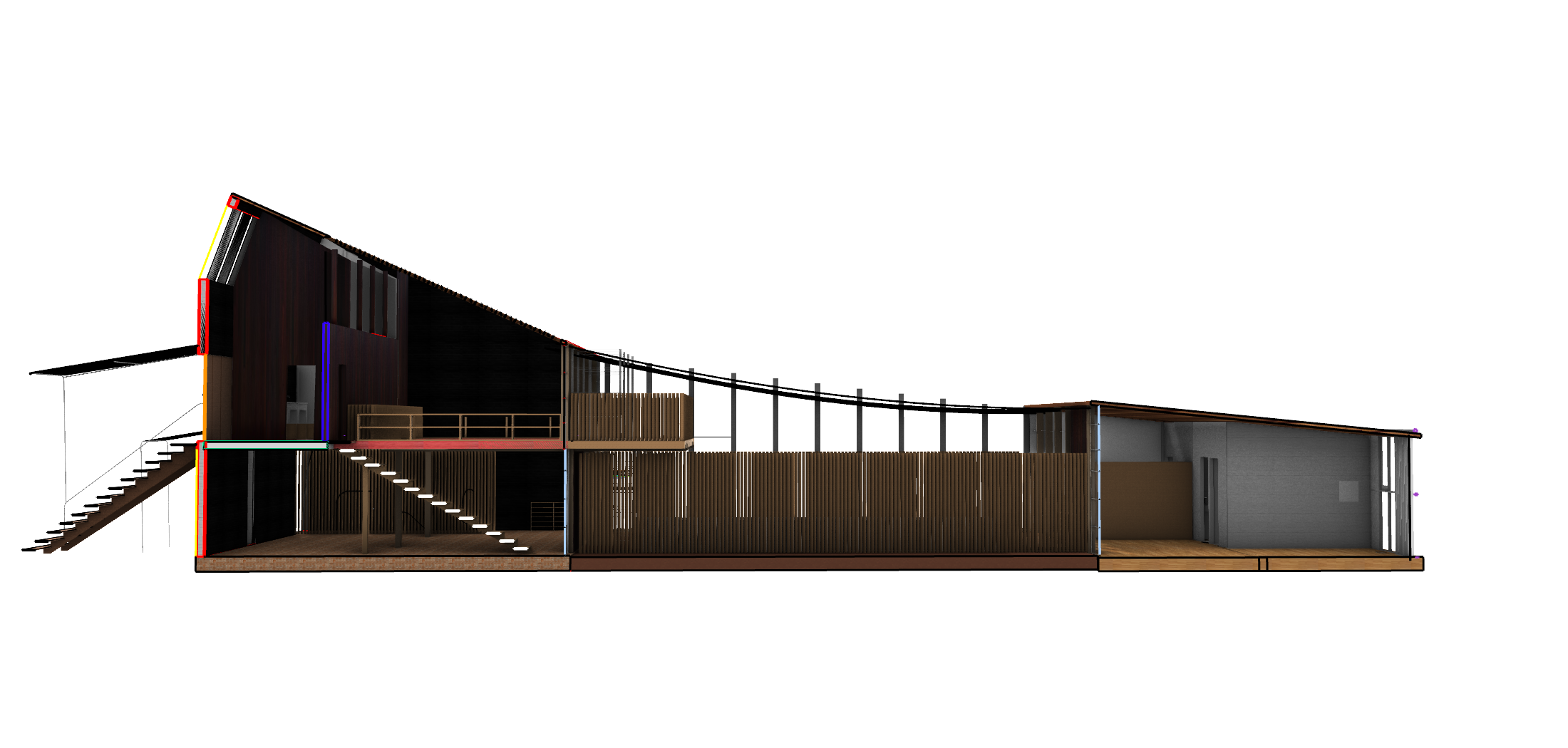 make a rendered section with no dimensions white background make black linework delete unnecessary line work