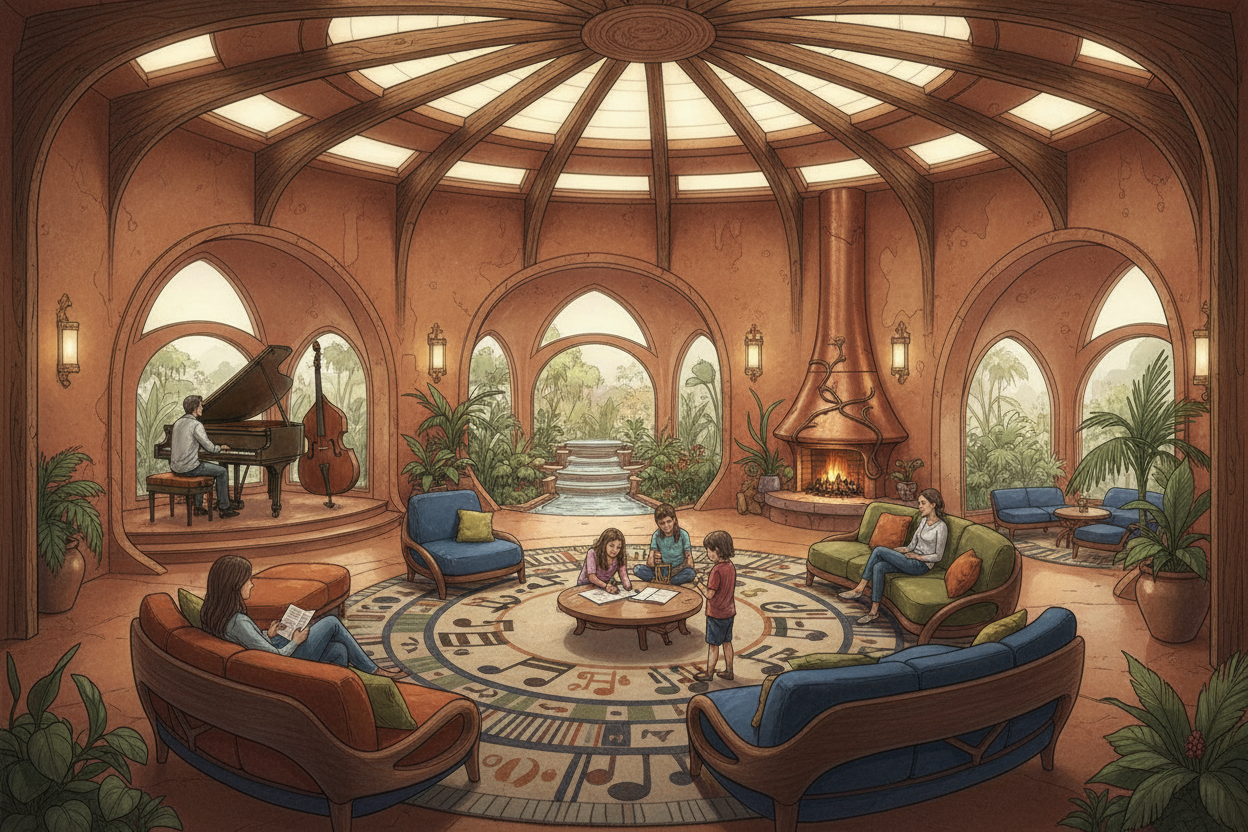 clean timber clad architectural exterior rendered in cinematic golden hour lighting vertical wood siding dark roof winery vines in the background sonoma area natural wood textures high fidelity photorealistic visualization crisp shadow falloff refined fa ade geometry richly detailed grain patterns soft atmospheric depth subtle lens bloom calm minimal landscaping premium architectural photography mood ultra clean composition and materials dark roof solid wood barn doors