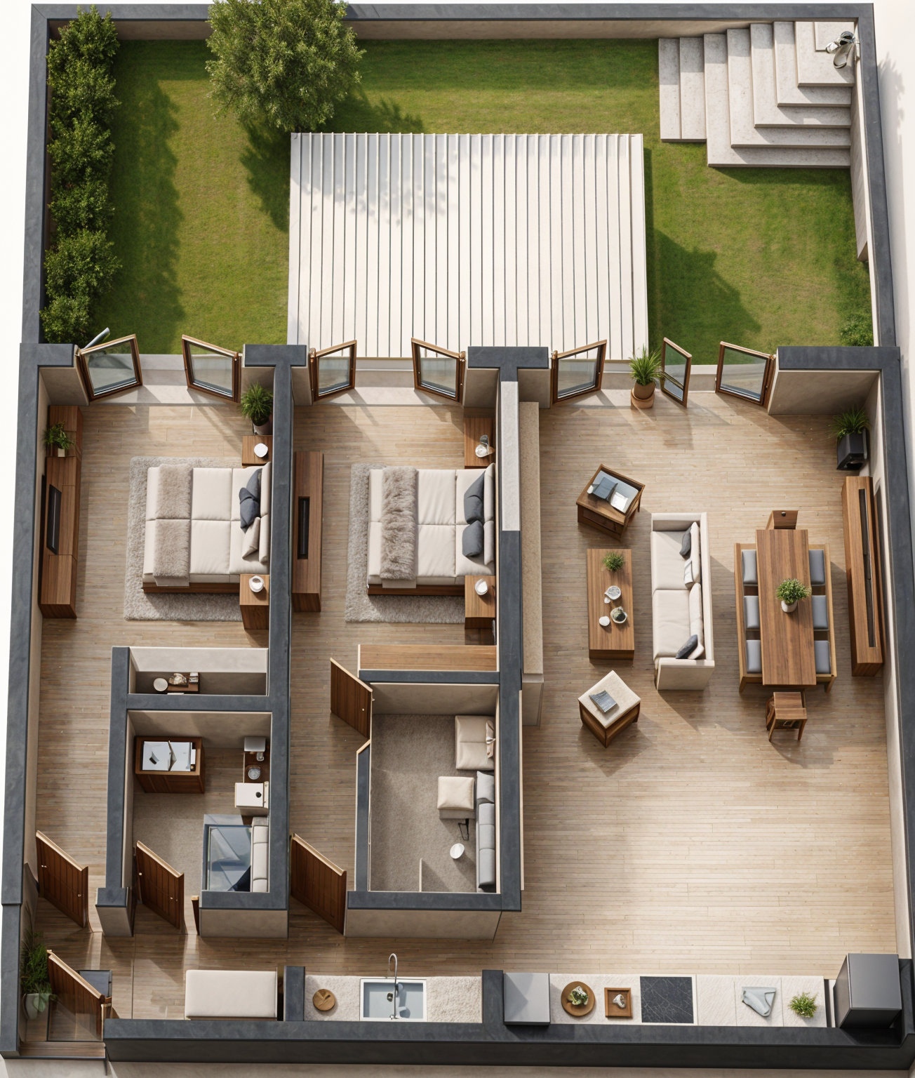 preserve original geometry keep layout unchanged no redesign no new furniture enhance only lighting and materials follow the drawing exactly preserve all wall positions and room proportions exactly no modification to design and materials do not change design do not change colors do not change materials do not change furniture do not change proportions enhance lighting enhance shadow turn off ceiling lights