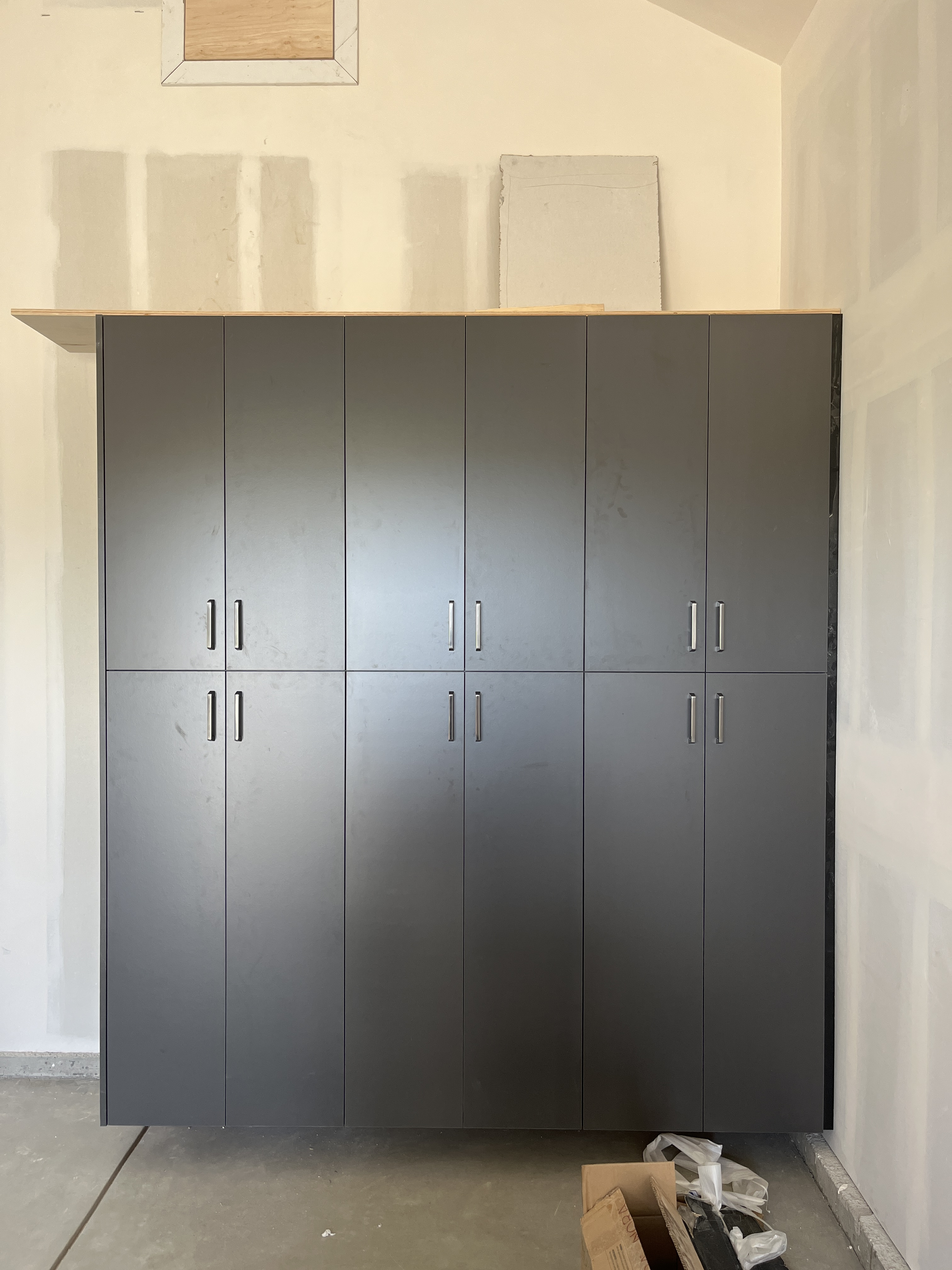 clean up the floor remove all debris remove all items from the top of the cabinets finish the drywall epoxy coat the garage floor remove all finger prints from the cabinets