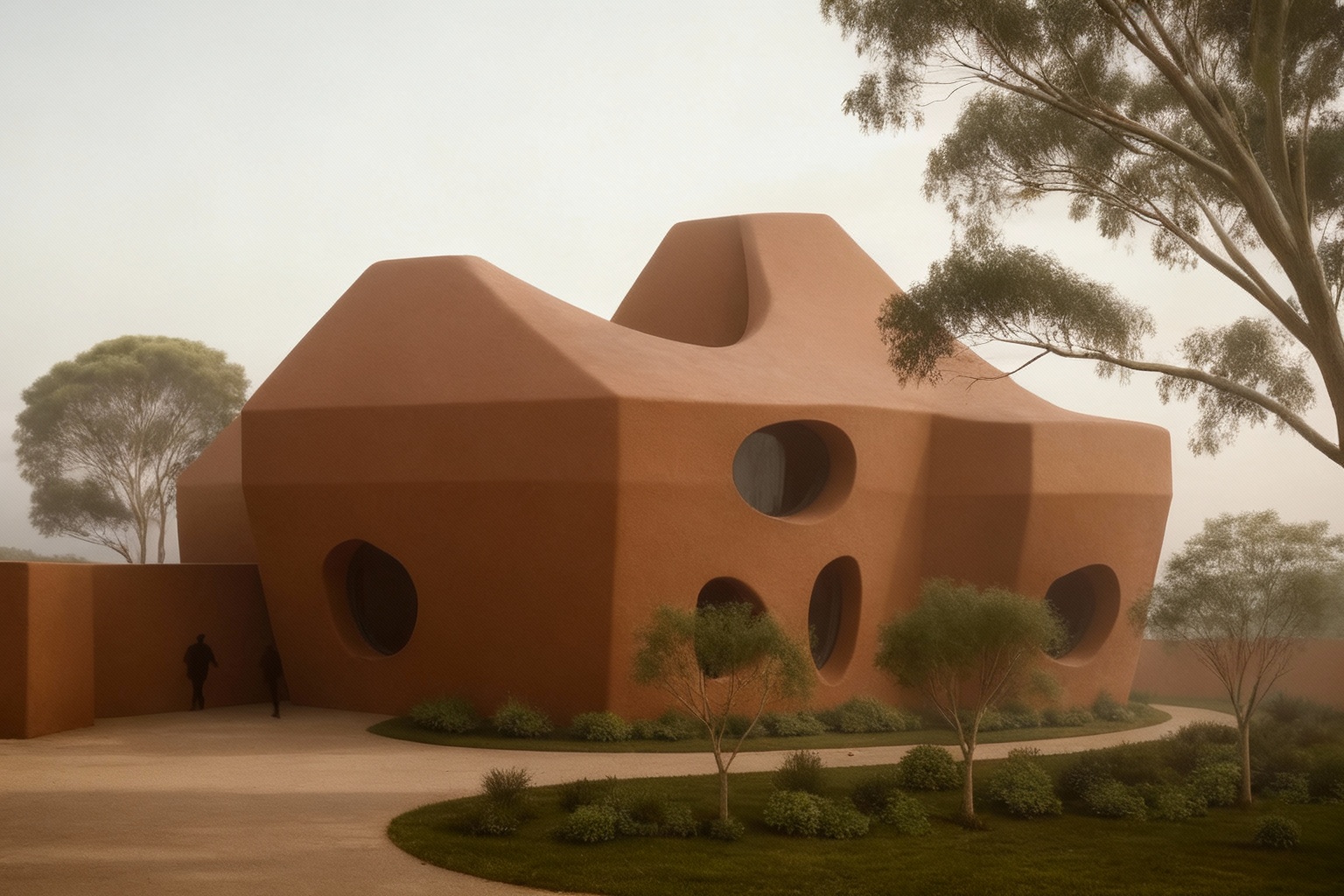 render this building in mirrored glass finish for the background add a park full of trees water in the river under the bridge and the london eye