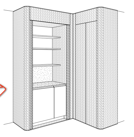 render this with light stained douglas fir veneer paint inside the cabinet a hunter green color with green stone counter