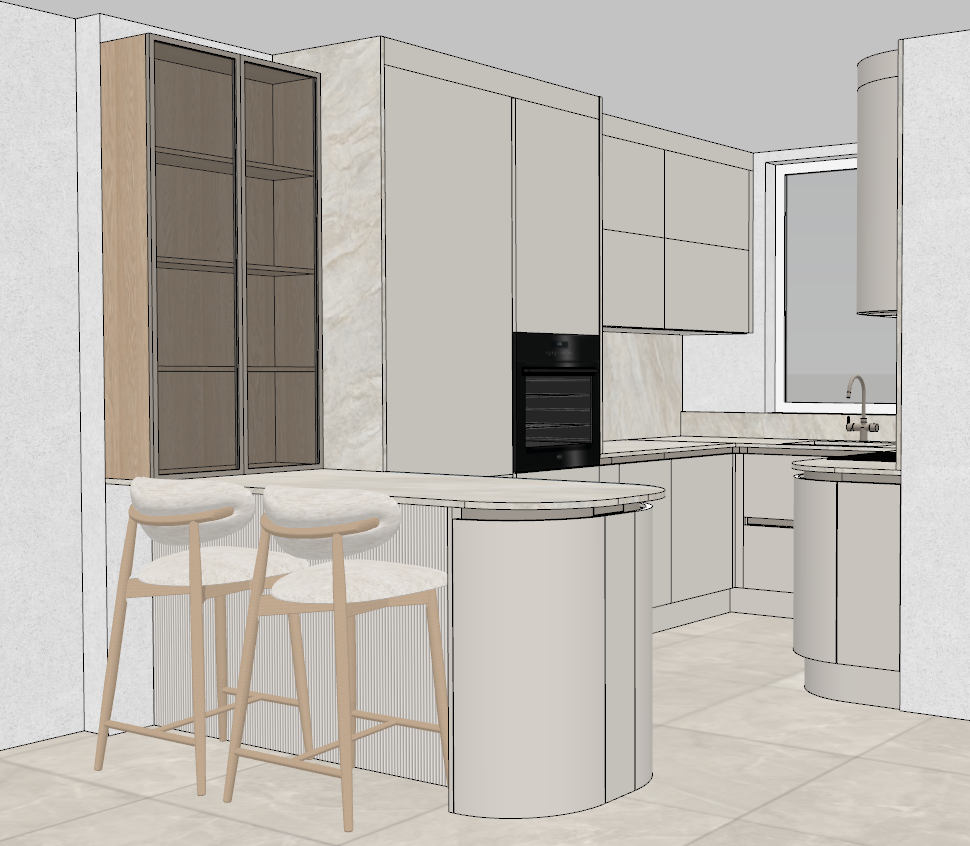 add wine glasses in the glass cabinet and a vertical led strip
