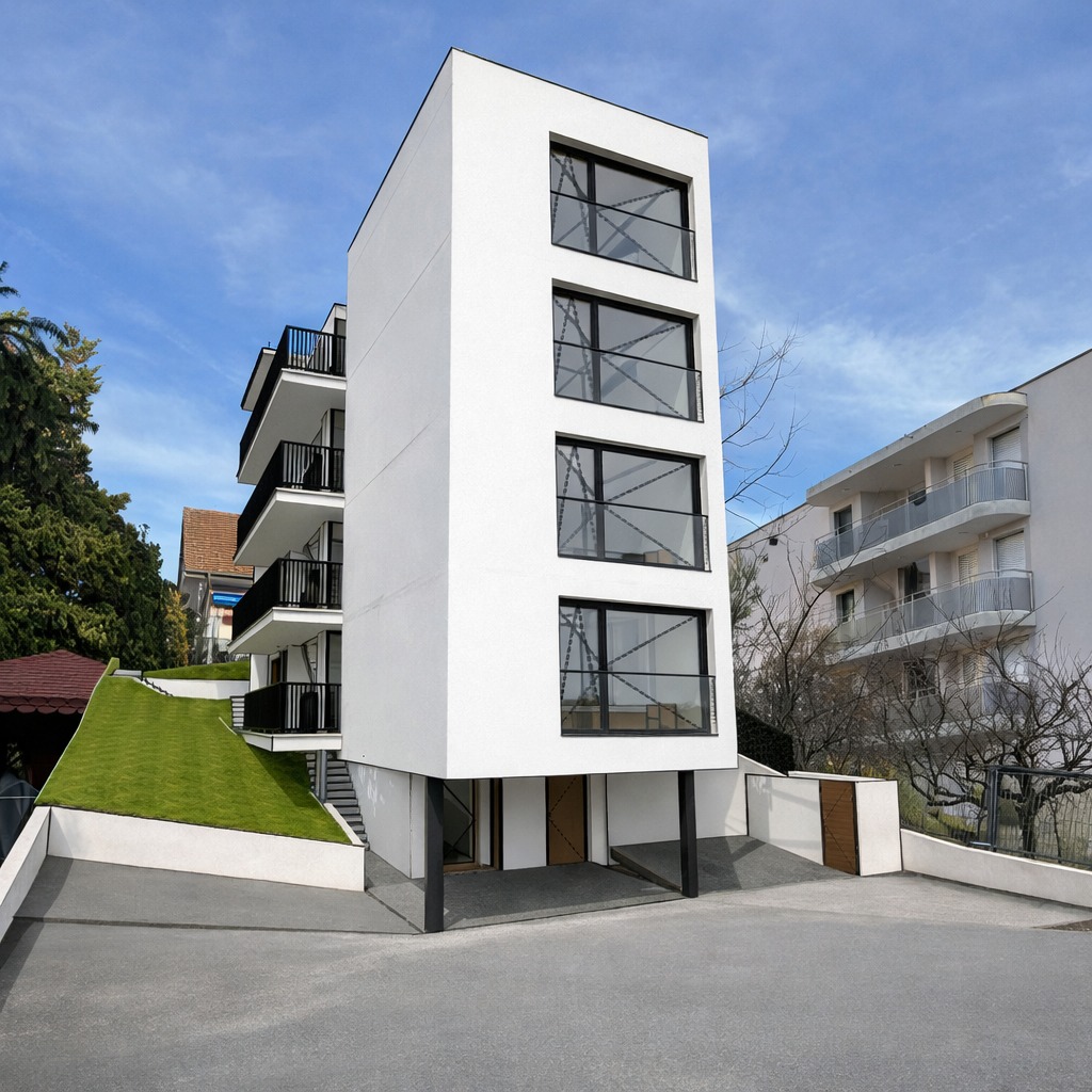 take off trees fro right and make building clear main building make it same colours front parking lot make it regular inclinations on left side draw make it all garden