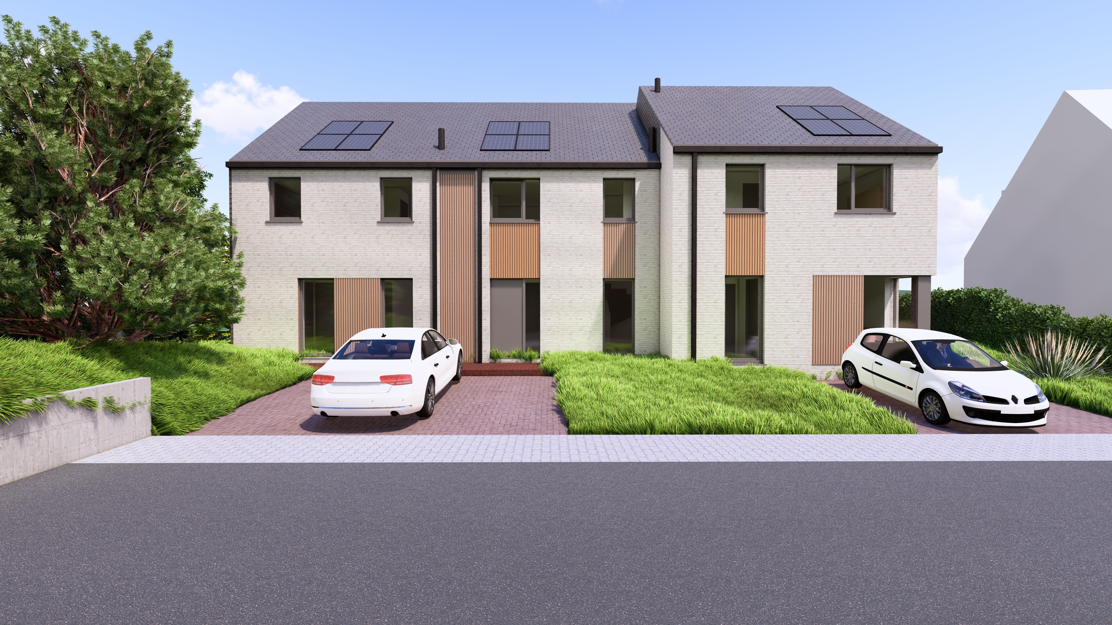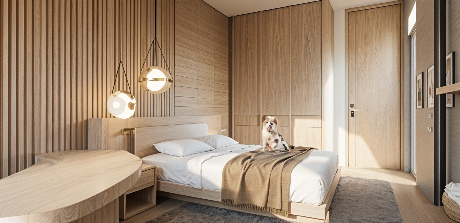 render a realistic view with people natural light wood on the background