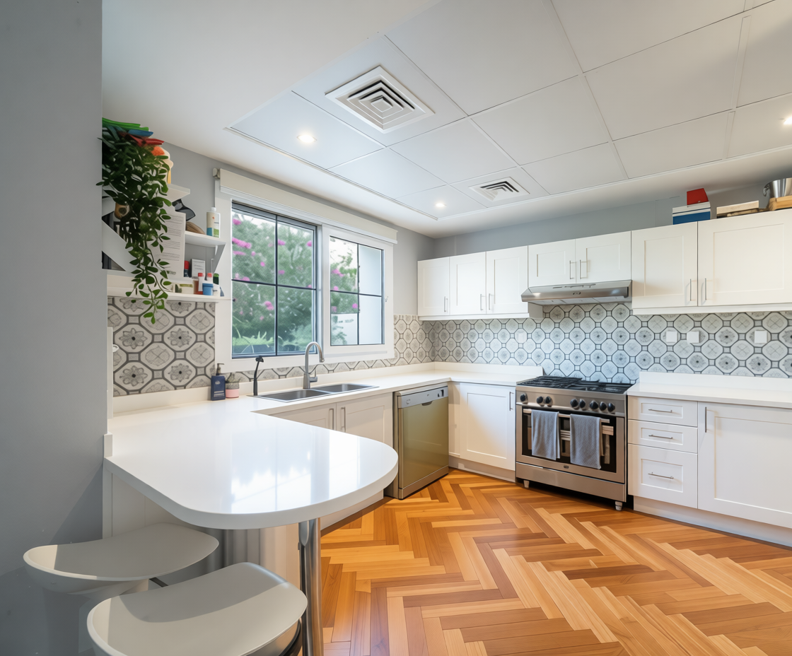 enlarge the top white kitchen cabinets to the ceiling