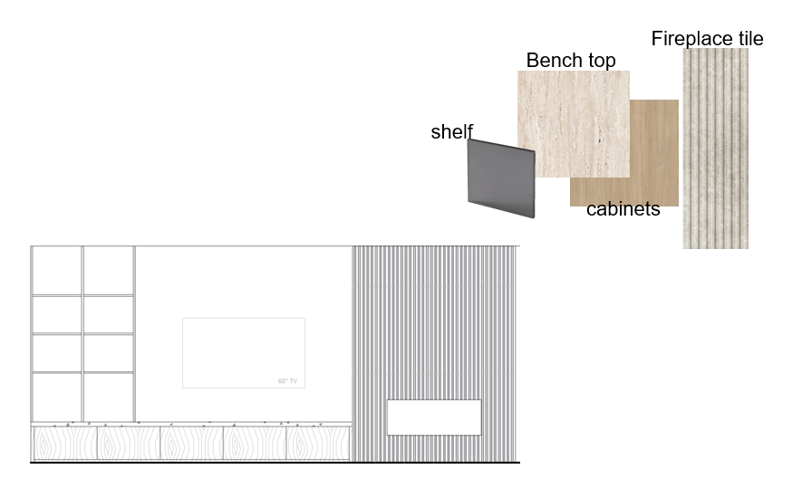 modern zen tv and fireplace wall fireplace tile 13x39 flat slab wood cabinets under bench wood chip bench countertop travertine shelf smoked black glass wall color simply white