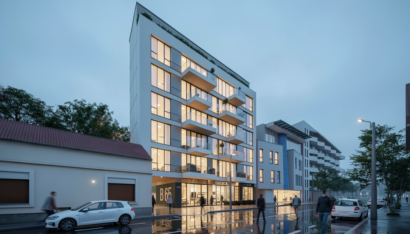 cycladic style complex houses in the city flat roofs