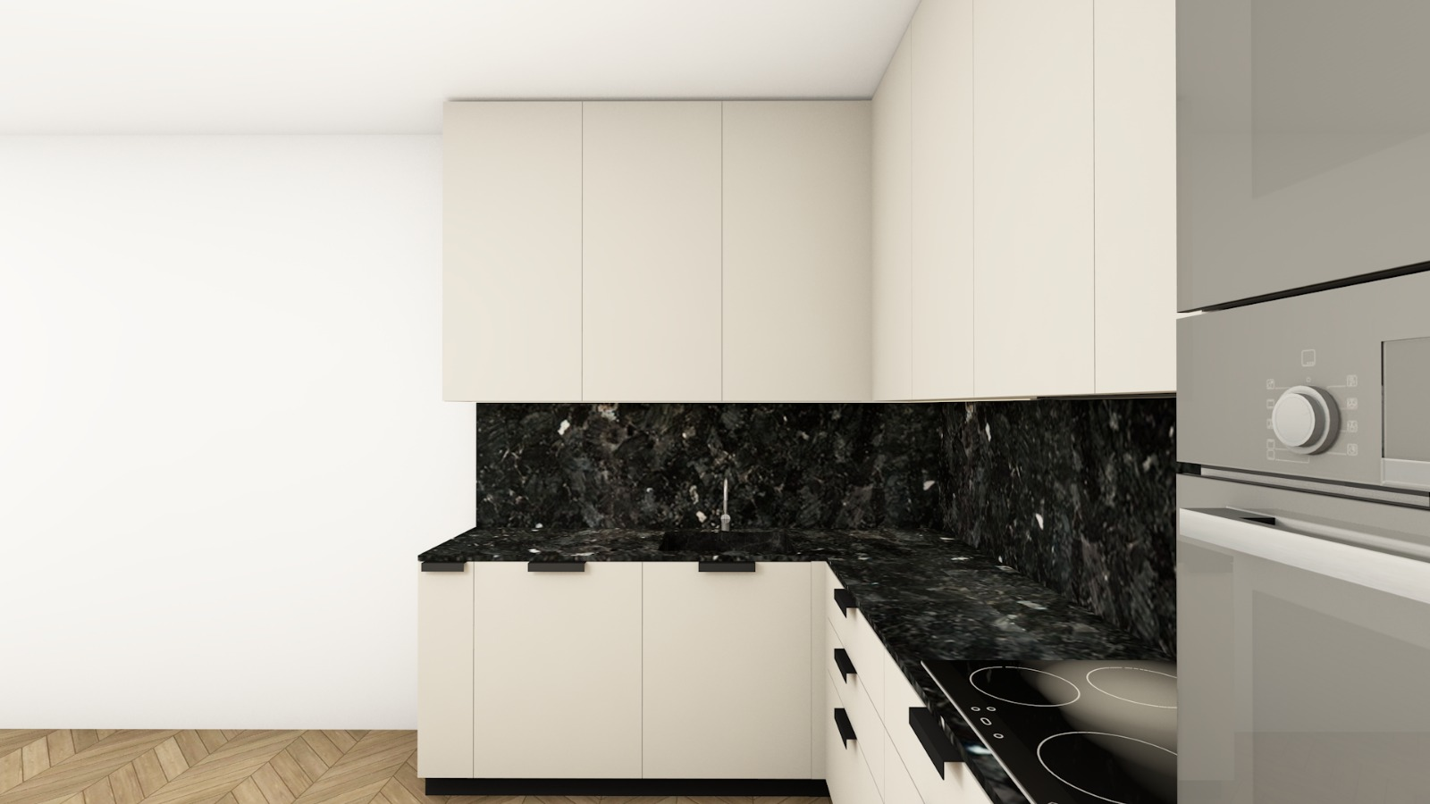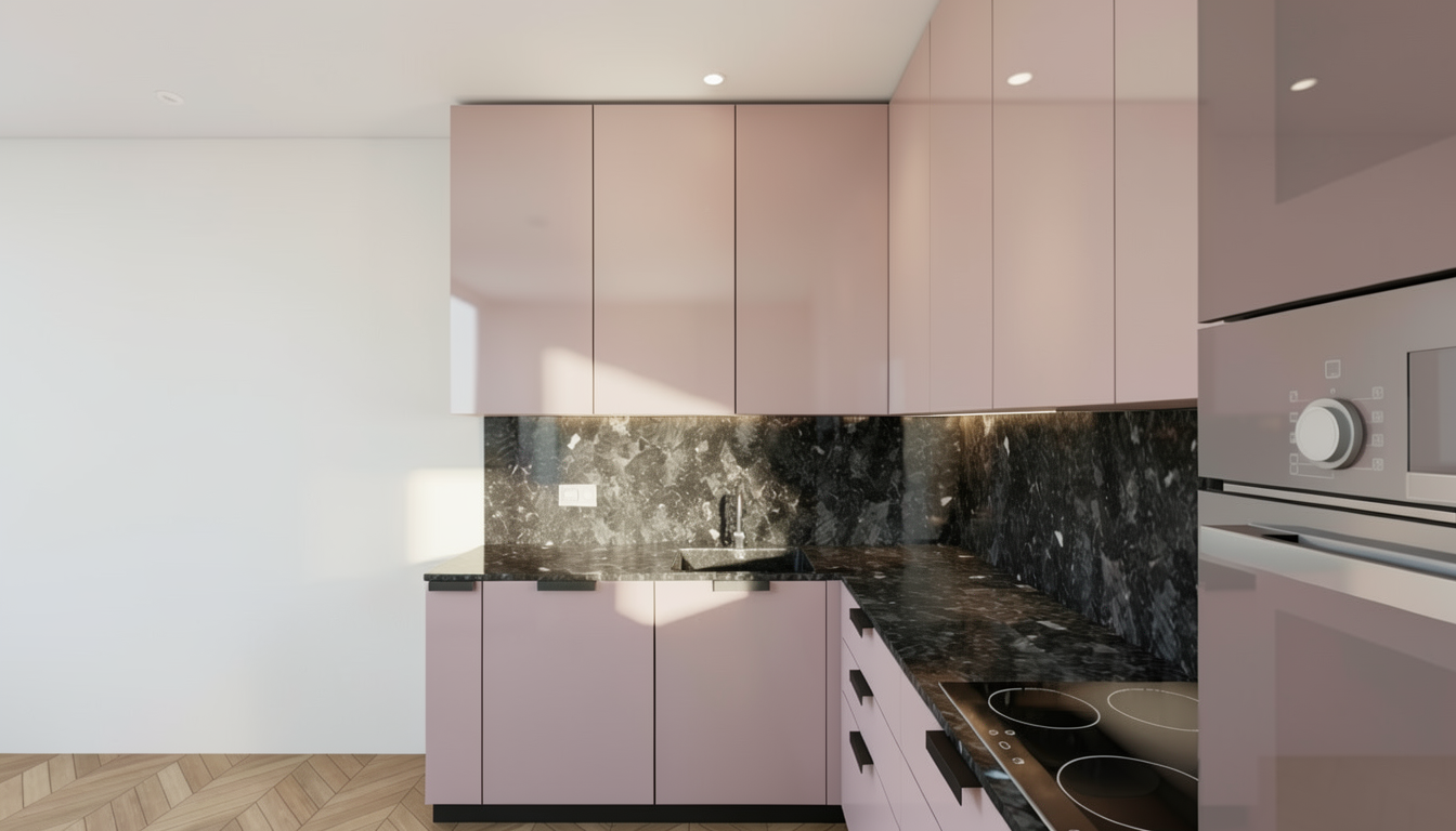 glossy cabinets modern kitchen high detailed render moderate lightning