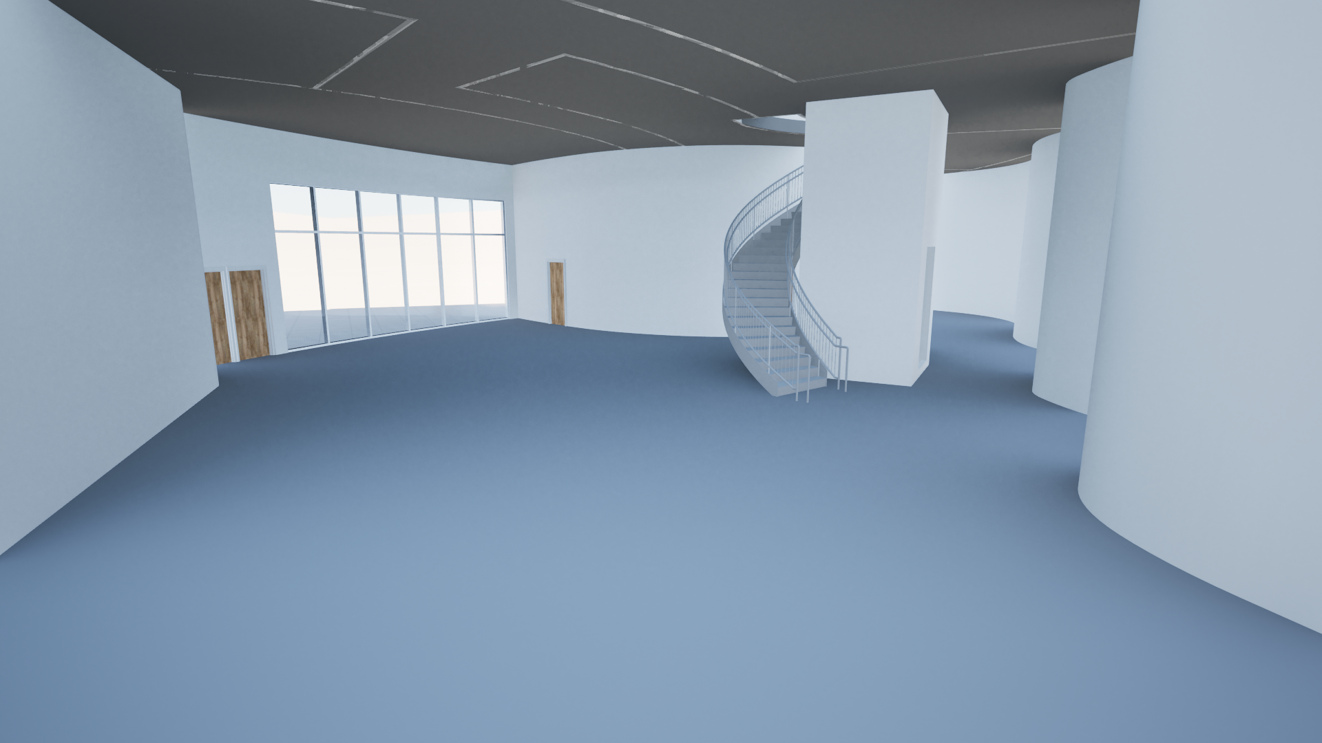 keep the interior the same but turn it into a cafe and lobby area with a gallery wall and a colorfull accent wall