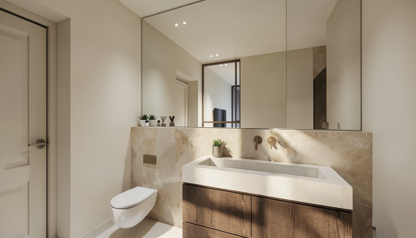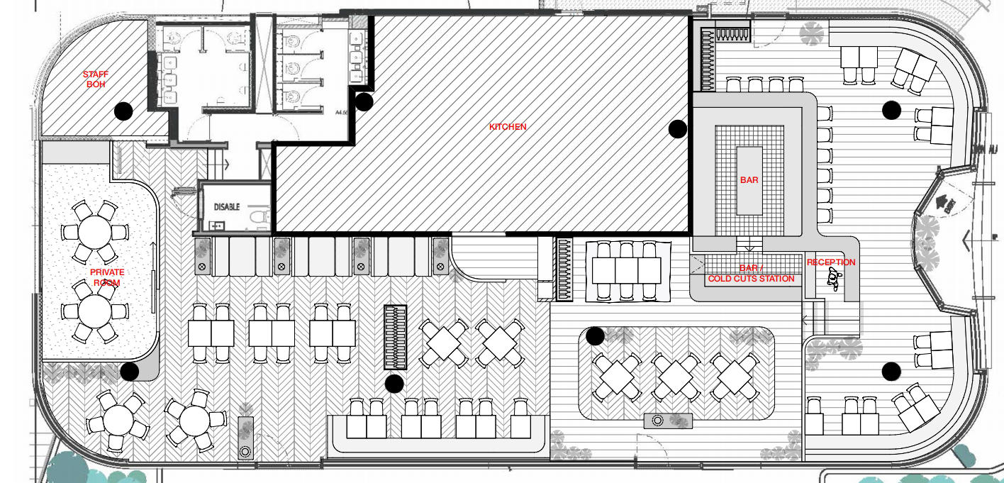render the area exactly as shown in the provided floor plan photorealistic architectural interior render mediterranean minimal italian restaurant in hong kong calm and elegant atmosphere neutral warm palette natural materials soft indirect lighting realistic scale high material accuracy