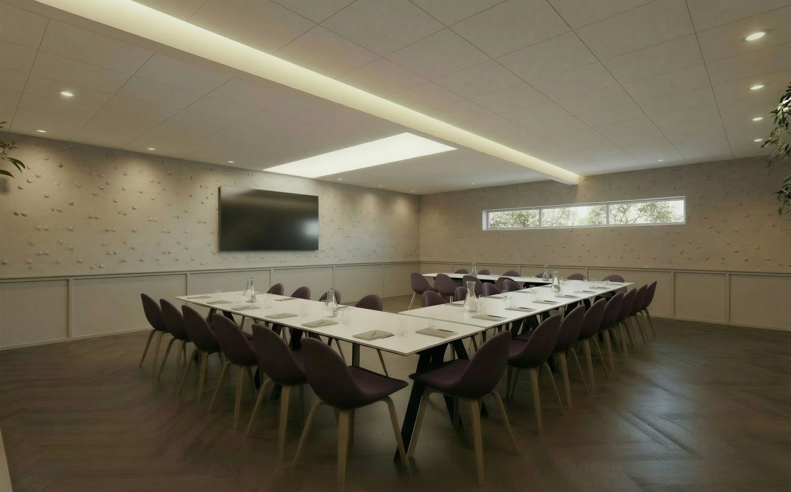 keep camera angle and building geometry the same paint top of chimneys white show lush green landscaping native to atlanta ga in the summer