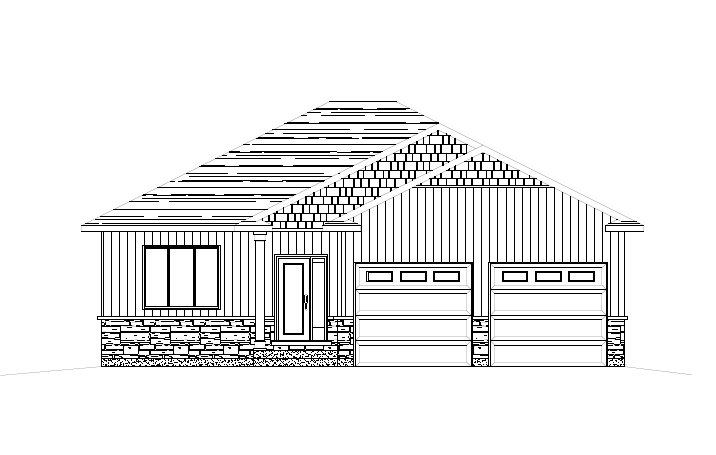 create realistic rendering stone skirt board and baton siding above shingled roof