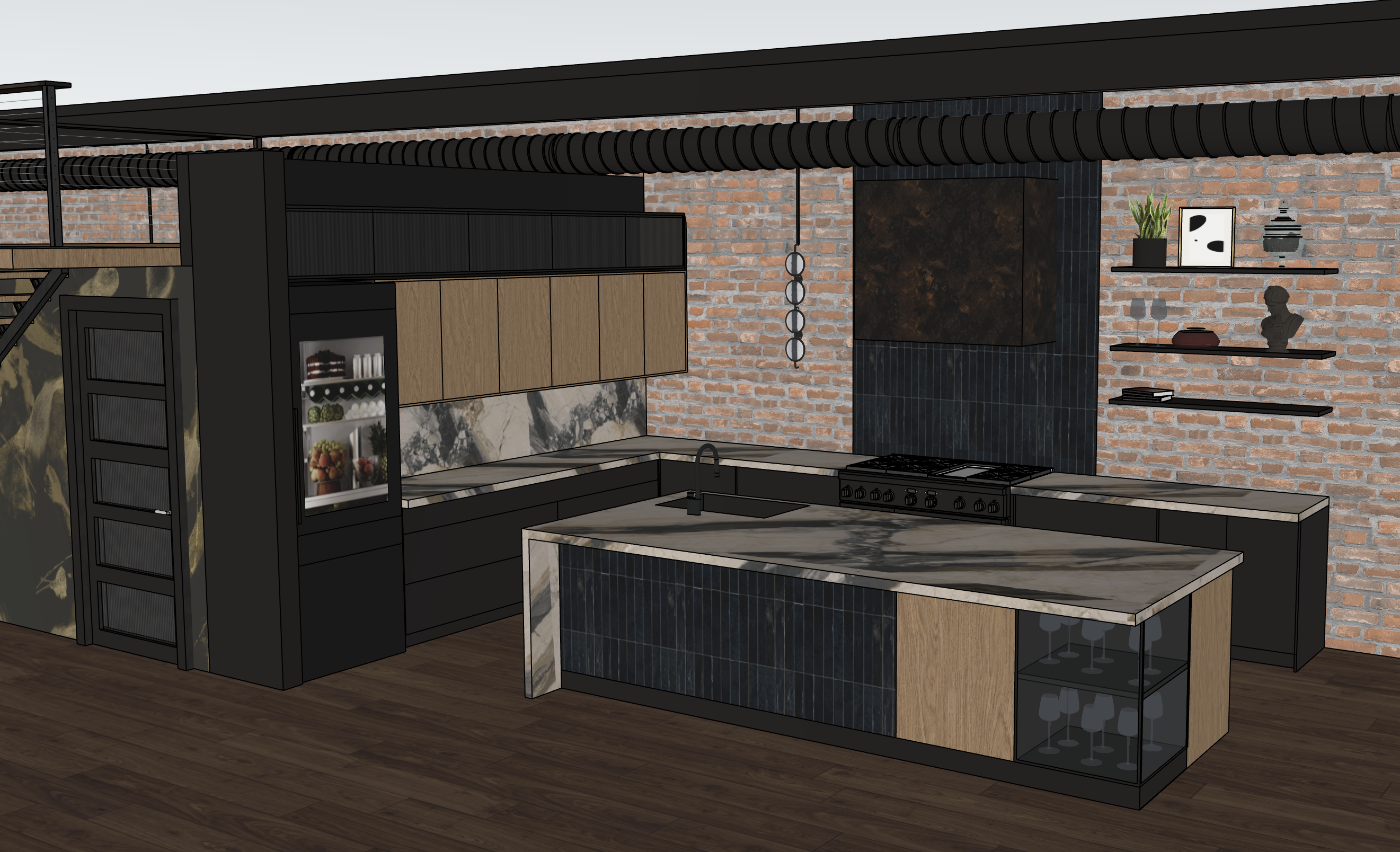 high end realistic magazine quality black open joist ceiling