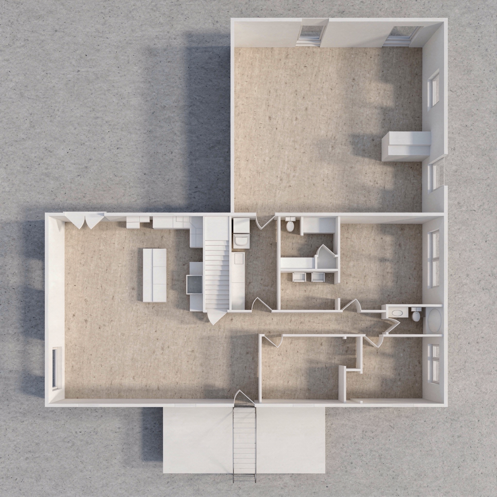 top room that s square is a garage add car add table a chairs to kitchen add beds to bedrooms stairs should be going down bottom of image is the front porch add an outdoor chair