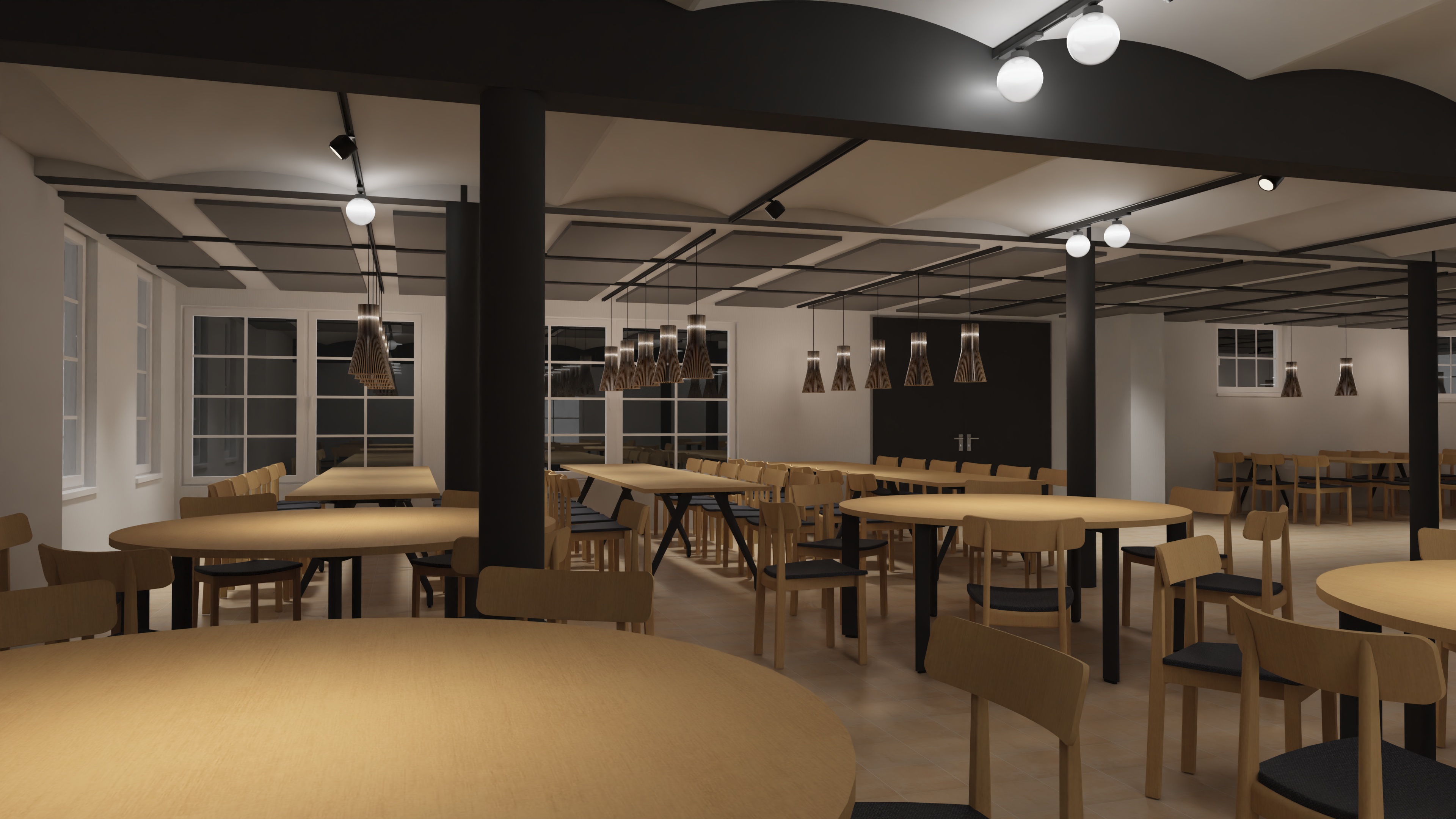 add white tablecloth and dishes do not change the lighting system do not chang ceiling or floor color