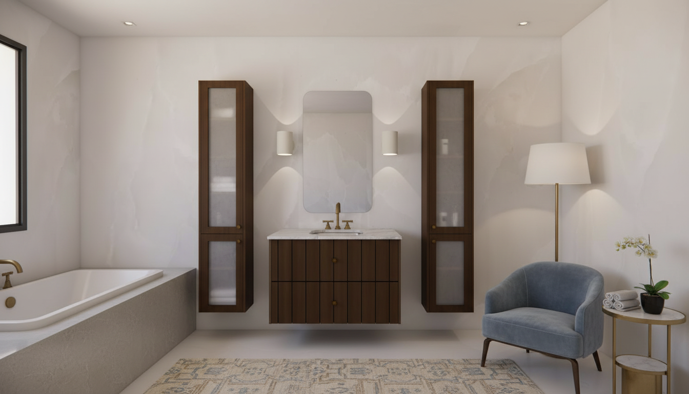 transform the provided interior image into a high end photorealistic render without changing furniture details and material