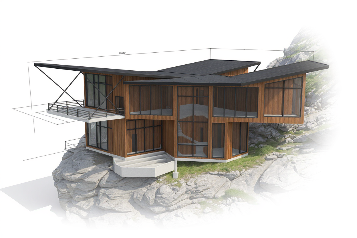 improve material and reflection central bay is a black panel and the rest is stone
