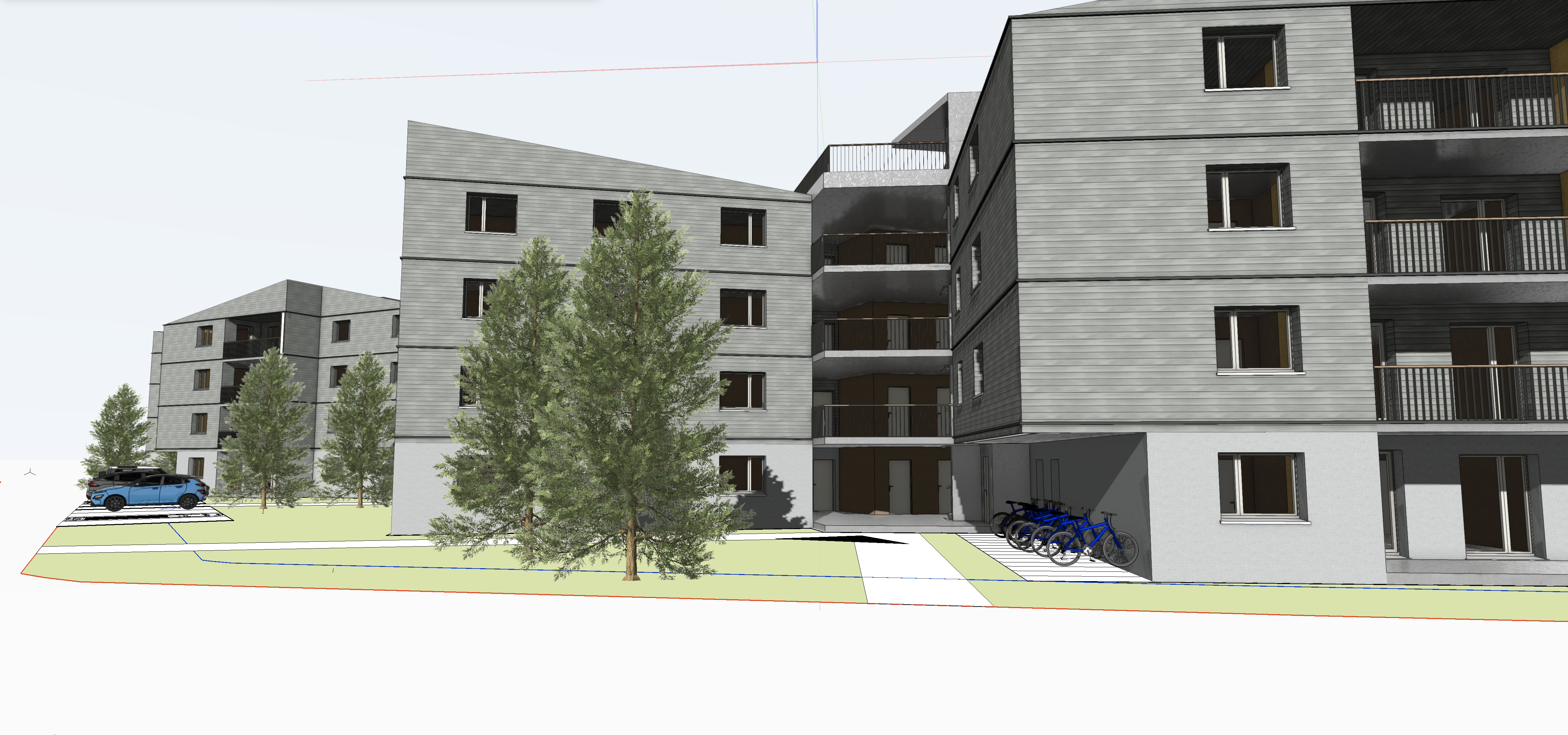 ein mehrgeschossiger wohnungsbau in th ringen im architekturstil von s dtirol aber sehr modern gehalten im erdgeschoss ist die fassade verputzt weiss und dar ber silbegraue holzverschalung