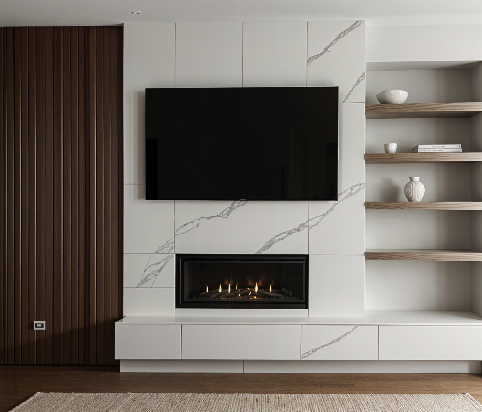 take the wood shelves floor to ceiling