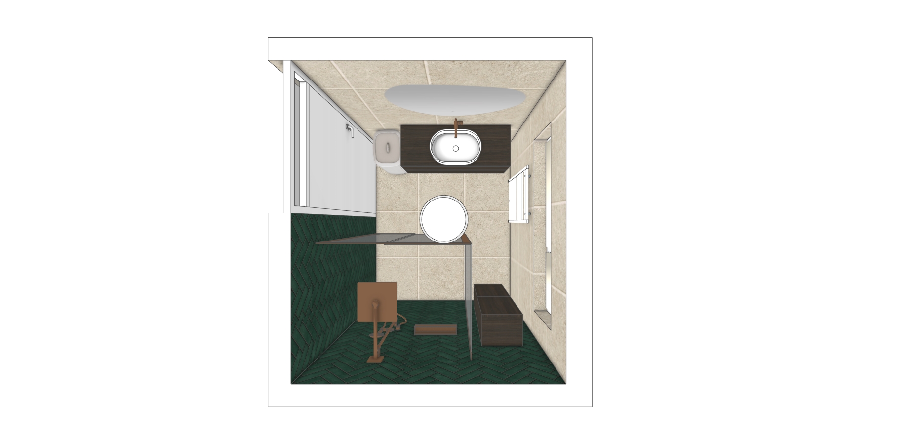 bright daytime render of a bathroom